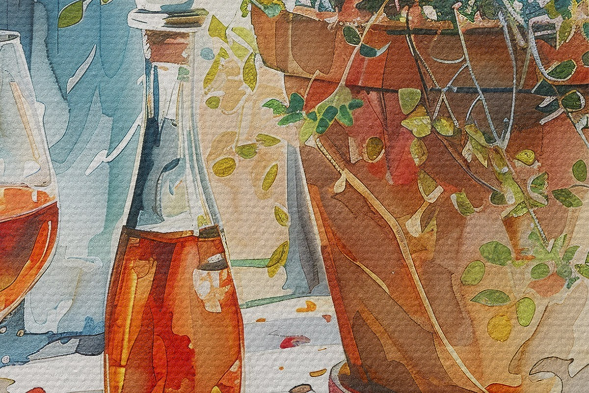 Runde Wandbilder Aquarellzweig mit Risotto, Sonnenlicht im Fenster, Glas Cocktail, Blumentopf Nr r39706