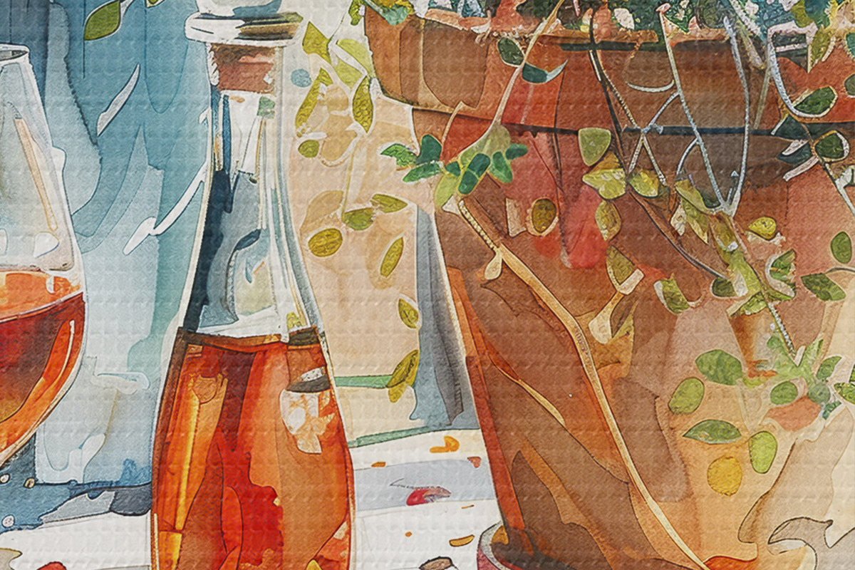 Runde Wandbilder Aquarellzweig mit Risotto, Sonnenlicht im Fenster, Glas Cocktail, Blumentopf r39706