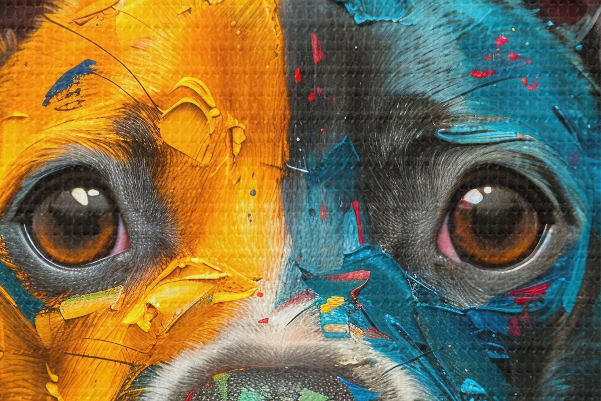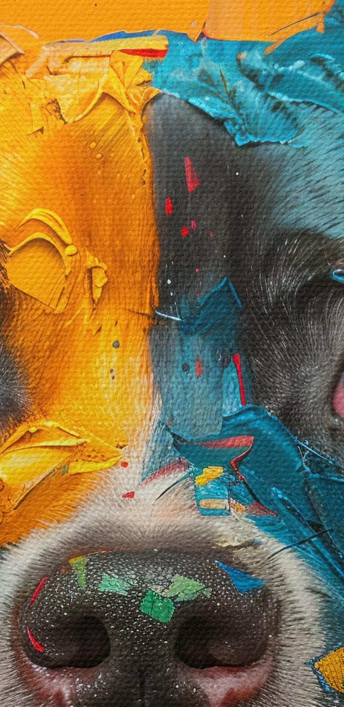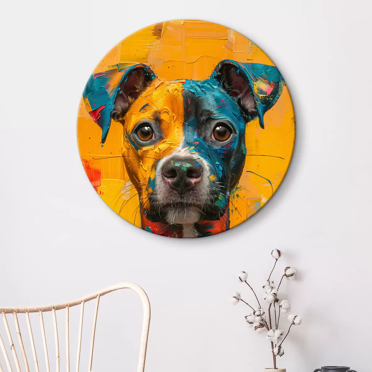 Runde Wandbilder Porträt eines Pitbull mit gelben und blauen Ölpinselstrichen r39722