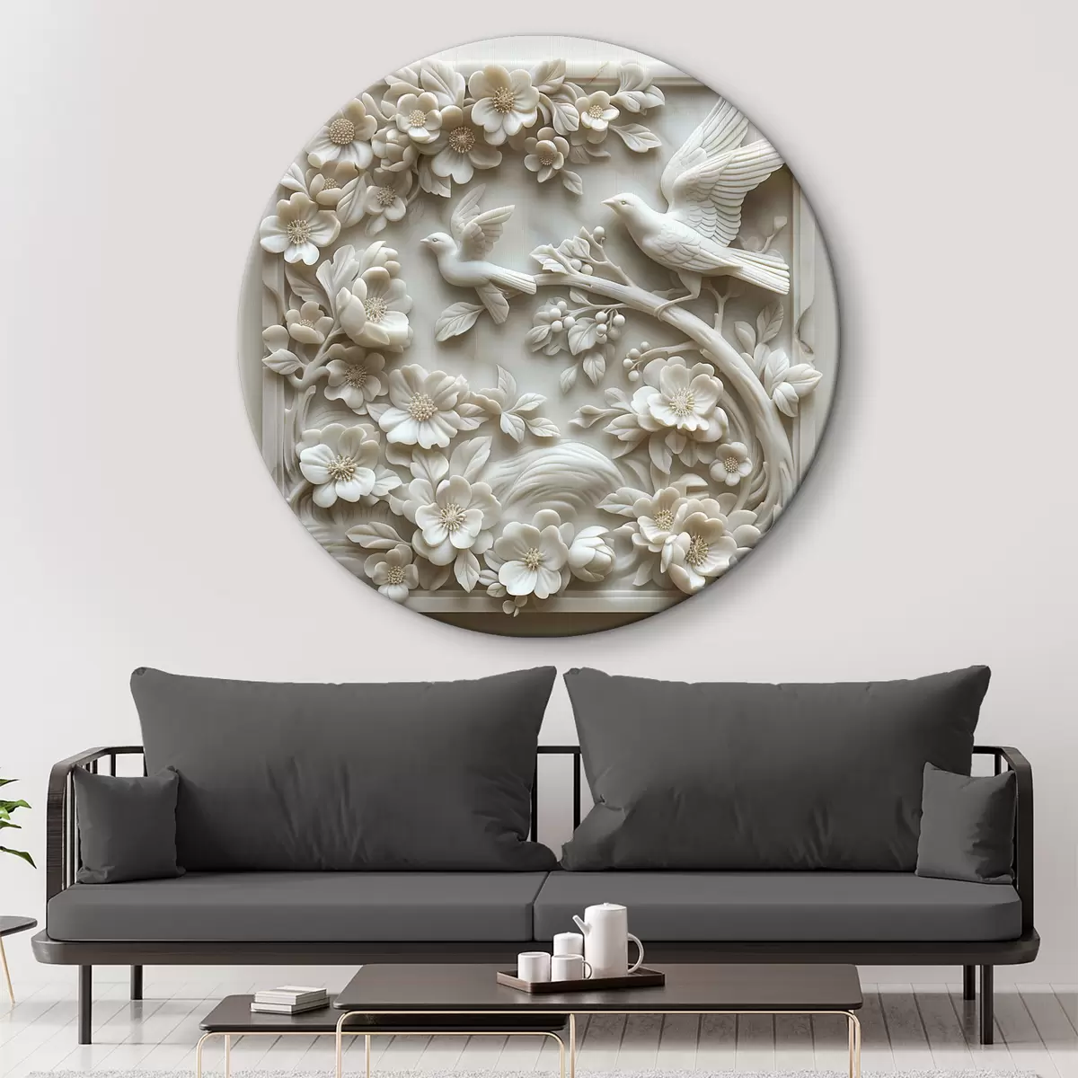 Runde Wandbilder Weißer Marmorgarten mit Flachrelief von Vögeln und Blumen r39728