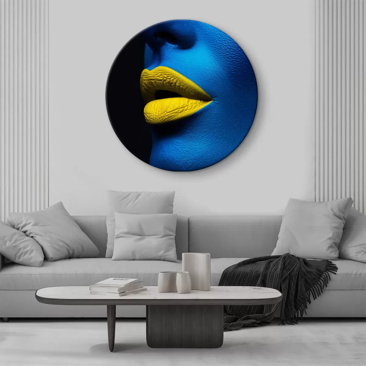 Runde Wandbilder Blaues Gesicht mit gelben Lippen Nr r39733