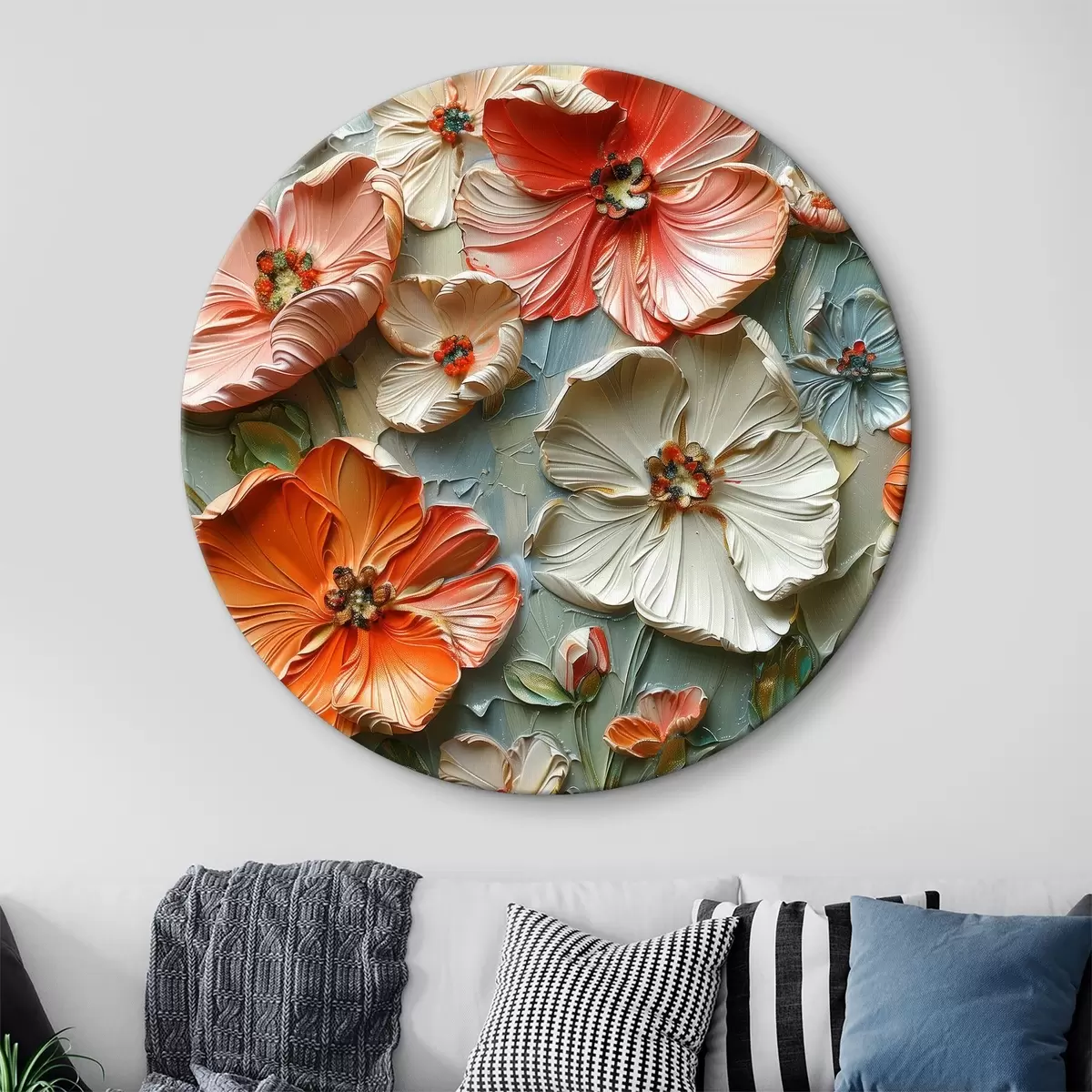 Runde Wandbilder Skulpturale Malerei mit pastellgetrockneten Blumen und Akzenten Nr r39748
