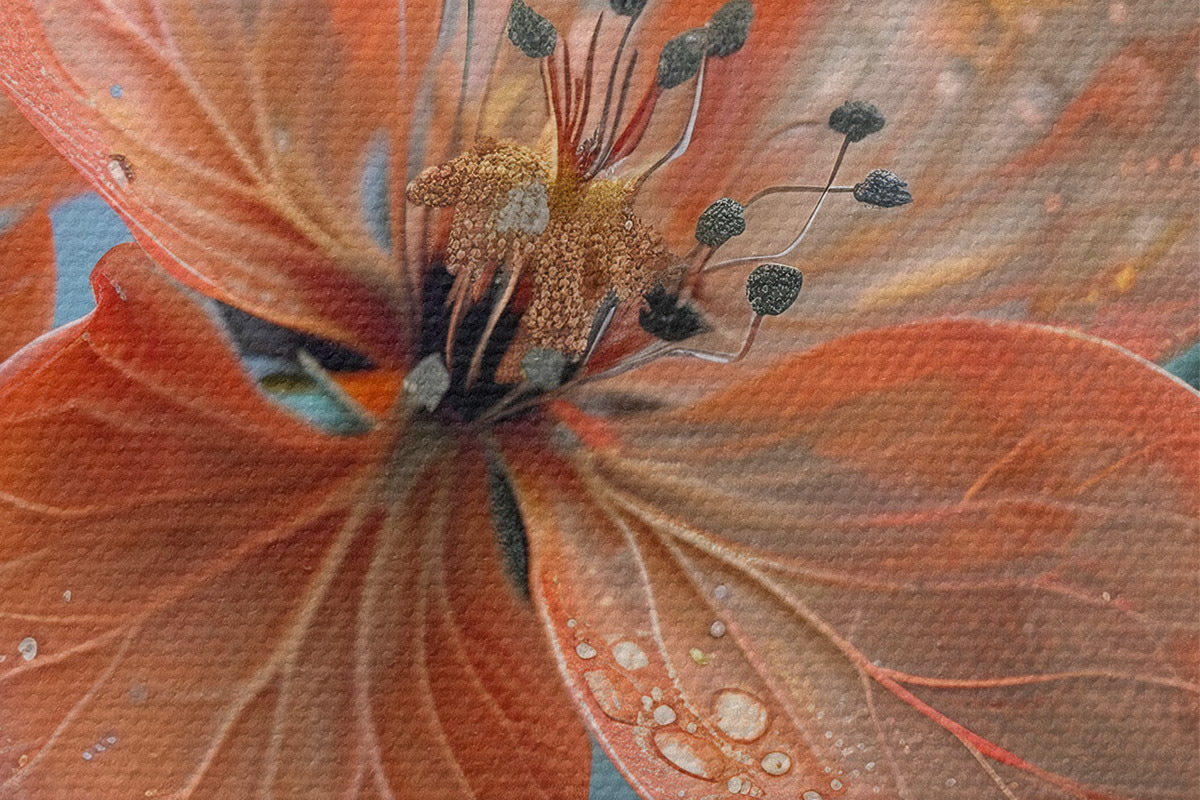 Drei Materialtypen stehen zur Verfügung: Economic Canvas - ein dichtes und haltbares Material für den Digitaldruck, identisch mit Malerleinwand, wasserfeste Oberfläche, realistische Wiedergabe von Details, mittelkörniges Material. Premium Canvas - die Textur ähnelt der einer Malerleinwand (verwobene kleine Fäden). Weiche, detaillierte Wiedergabe des Bildes auf einer matten Oberfläche. Eco-Premium - hochwertiges Gewebe aus 100% Baumwolle. Dank der natürlichen Baumwollfasern ist das Material langlebig und verschleißfest. Hervorragende Farbwiedergabe und Detailtreue.