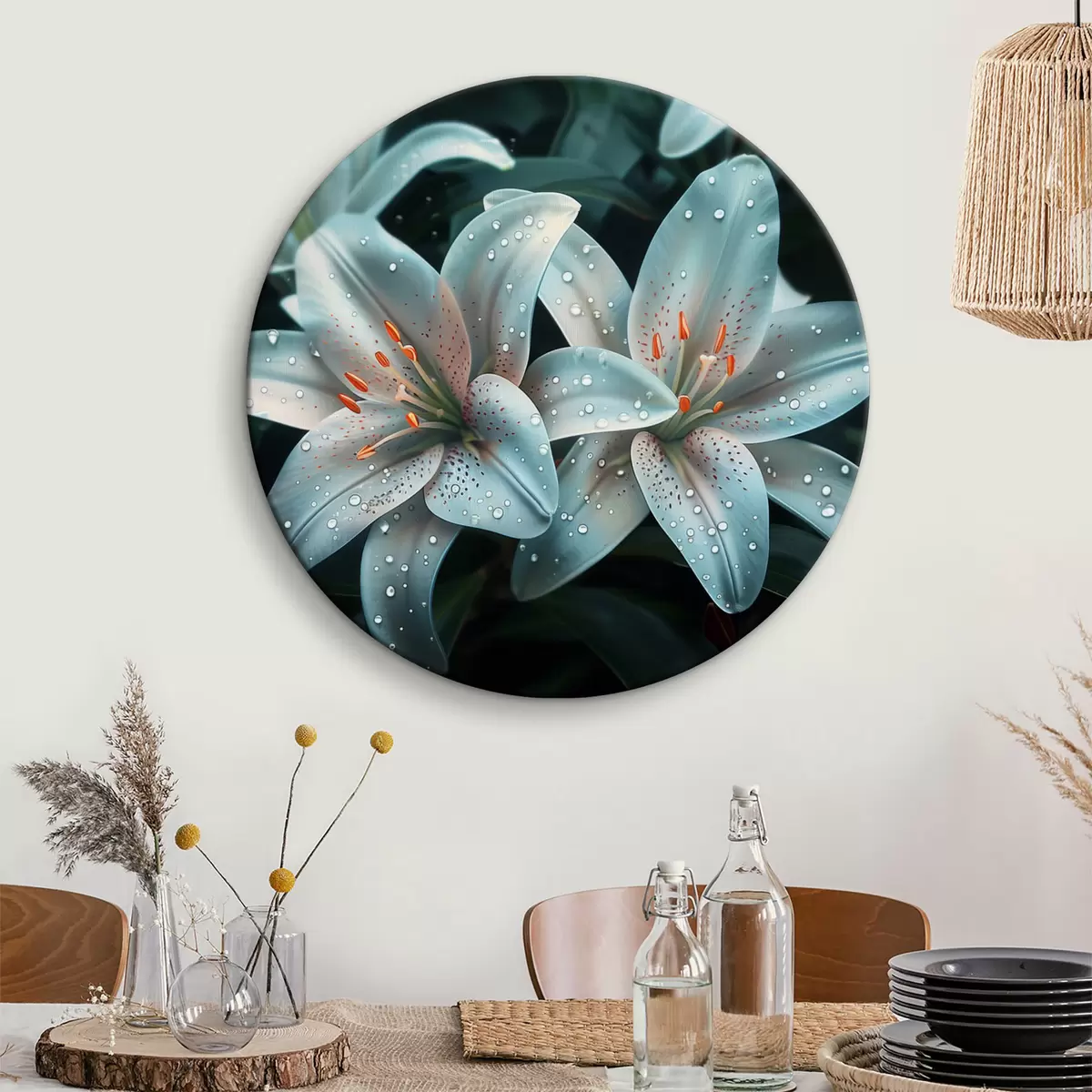 Runde Wandbilder Zarte weiße Lilien mit Morgentau Nr r39756