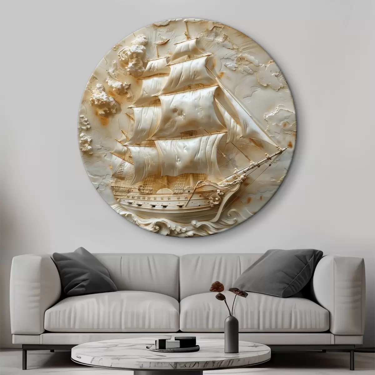 Runde Wandbilder Flachrelief eines Schiffes, das auf dem Meer segelt Nr r39757