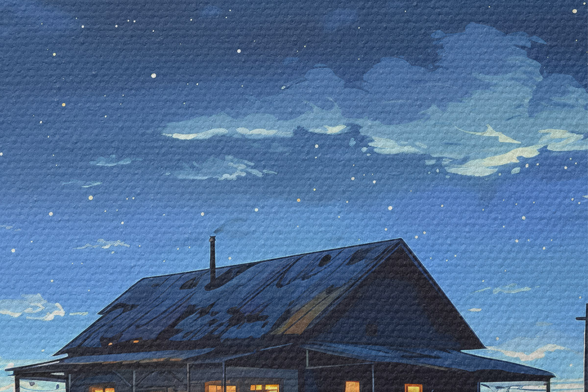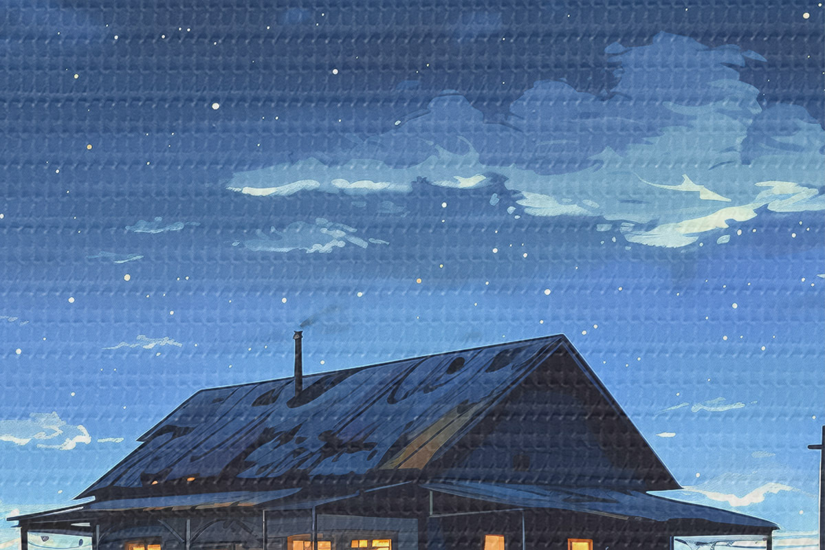 Runde Wandbilder Bauernhaus in der Wüste, sternenklarer Nachthimmel, Wolken, Naturlandschaft Nr r39771