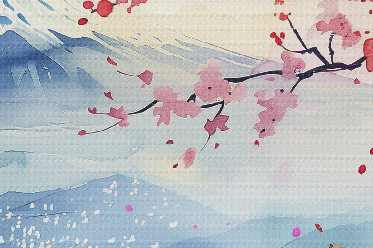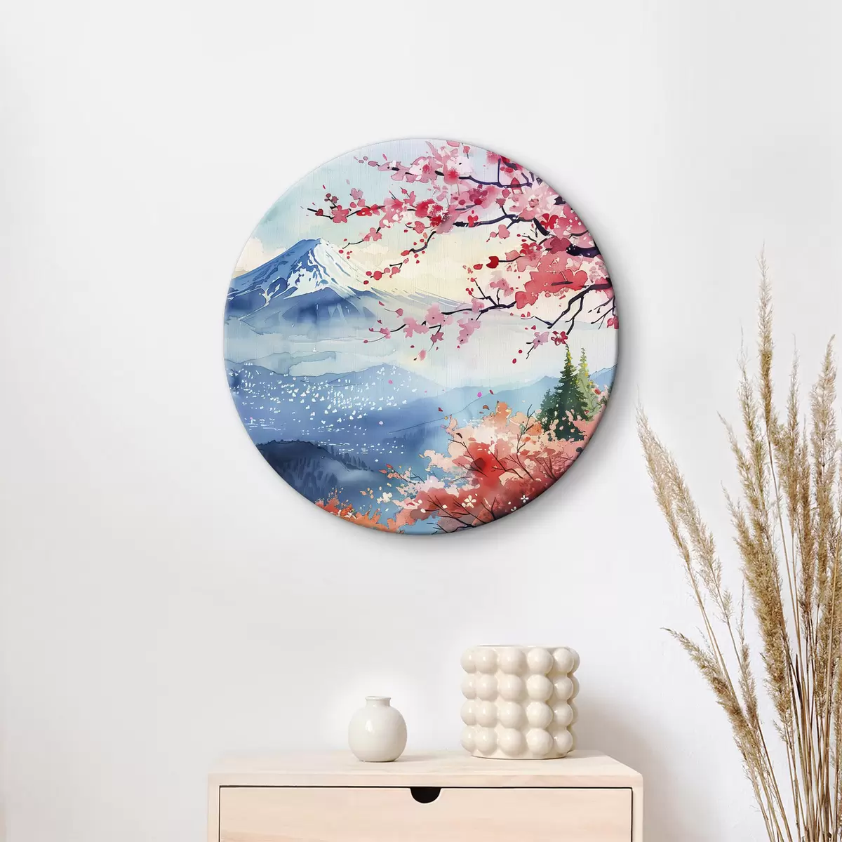 Runde Wandbilder Berg Fuji Landschaft, orientalische Natur, Kirschbäume, Sonnenuntergang r39775