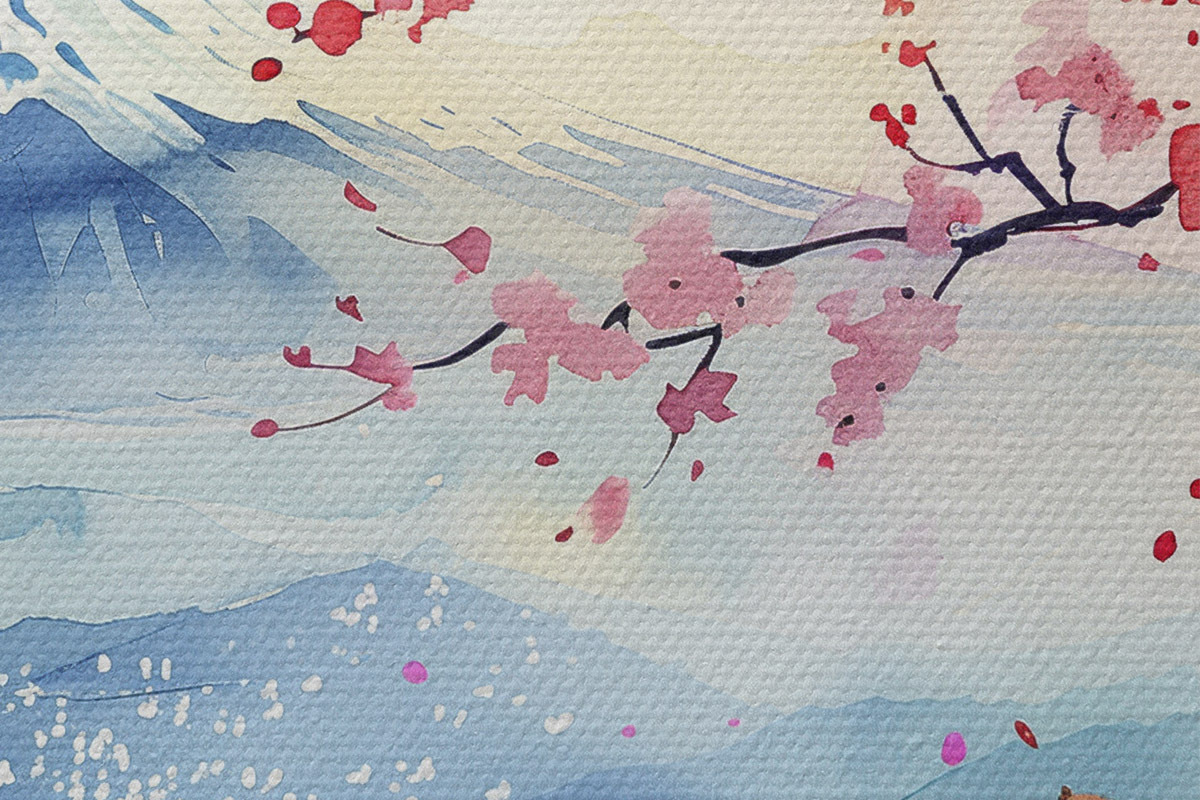 Runde Wandbilder Berg Fuji Landschaft, orientalische Natur, Kirschbäume, Sonnenuntergang Nr r39775