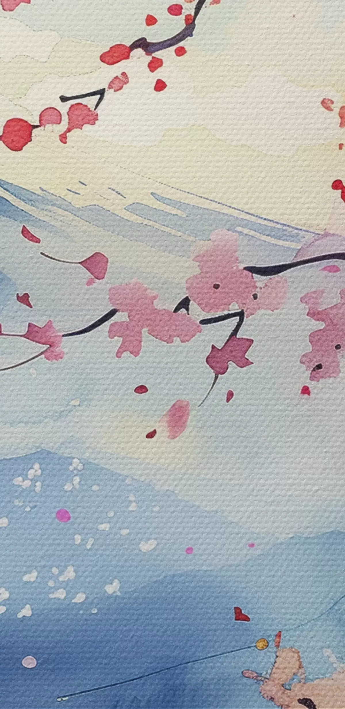 Das Gemälde kann sofort nach Erhalt aufgehängt werden. Das Gemälde wird auf einen 2 cm breiten Holzkeilrahmen aufgespannt.
