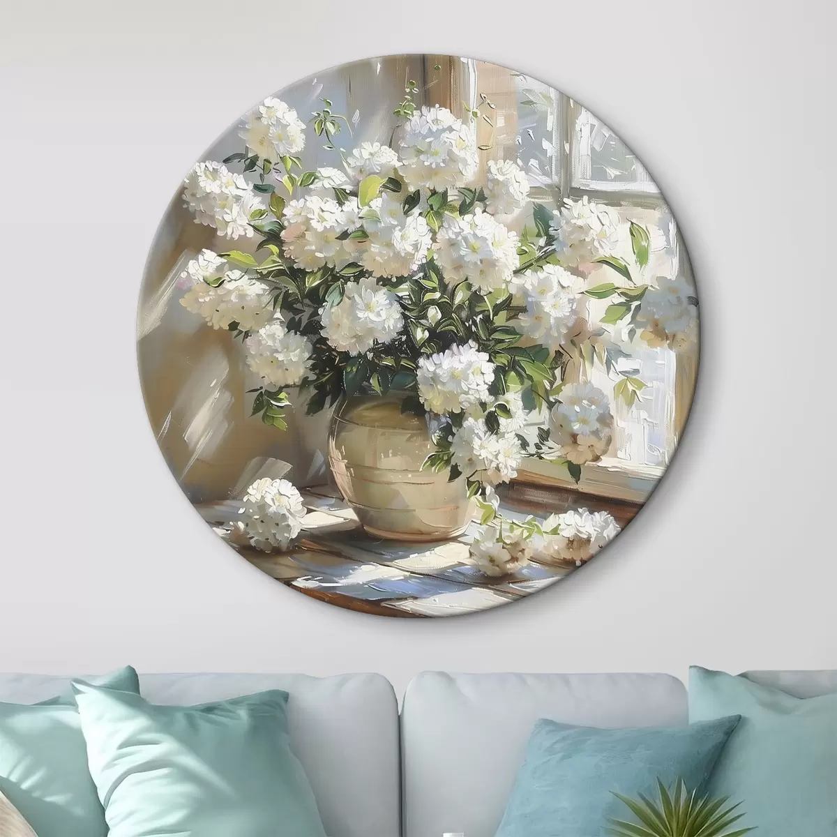 Runde Wandbilder Ein schöner Blumenstrauß steht auf der Fensterbank Nr r39779