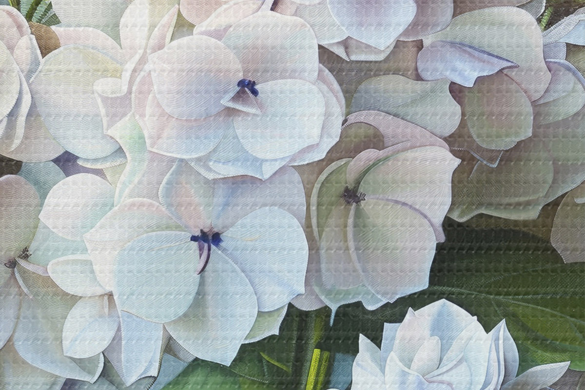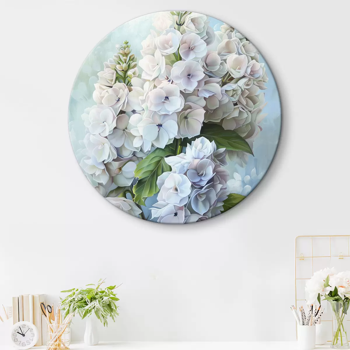 Runde Wandbilder Lila Hortensienblüte, sanfte Naturfarben, Aquarellzeichnung Nr r39783