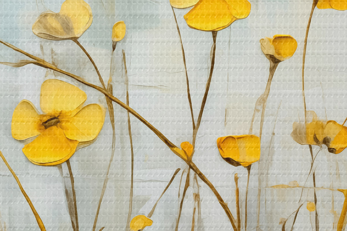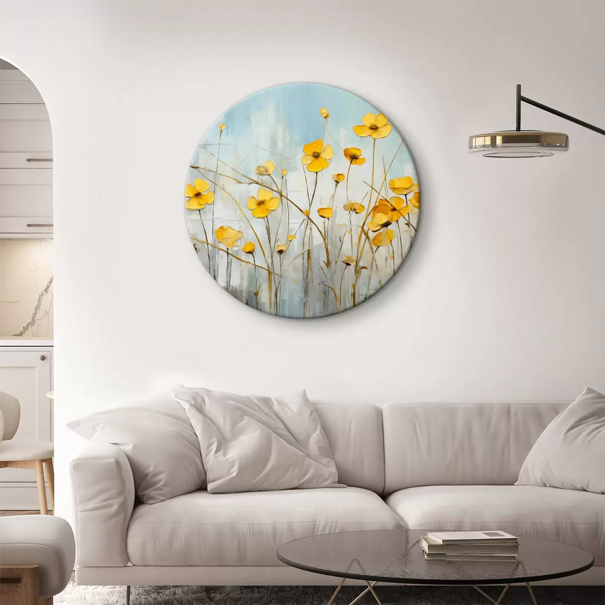 Runde Wandbilder Gelbe kleine Blumen auf einem langen Stiel Ölgemälde r39823