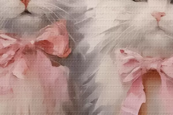 Runde Wandbilder Weiße Katzen mit rosa Schleifen Ölgemälde r39826