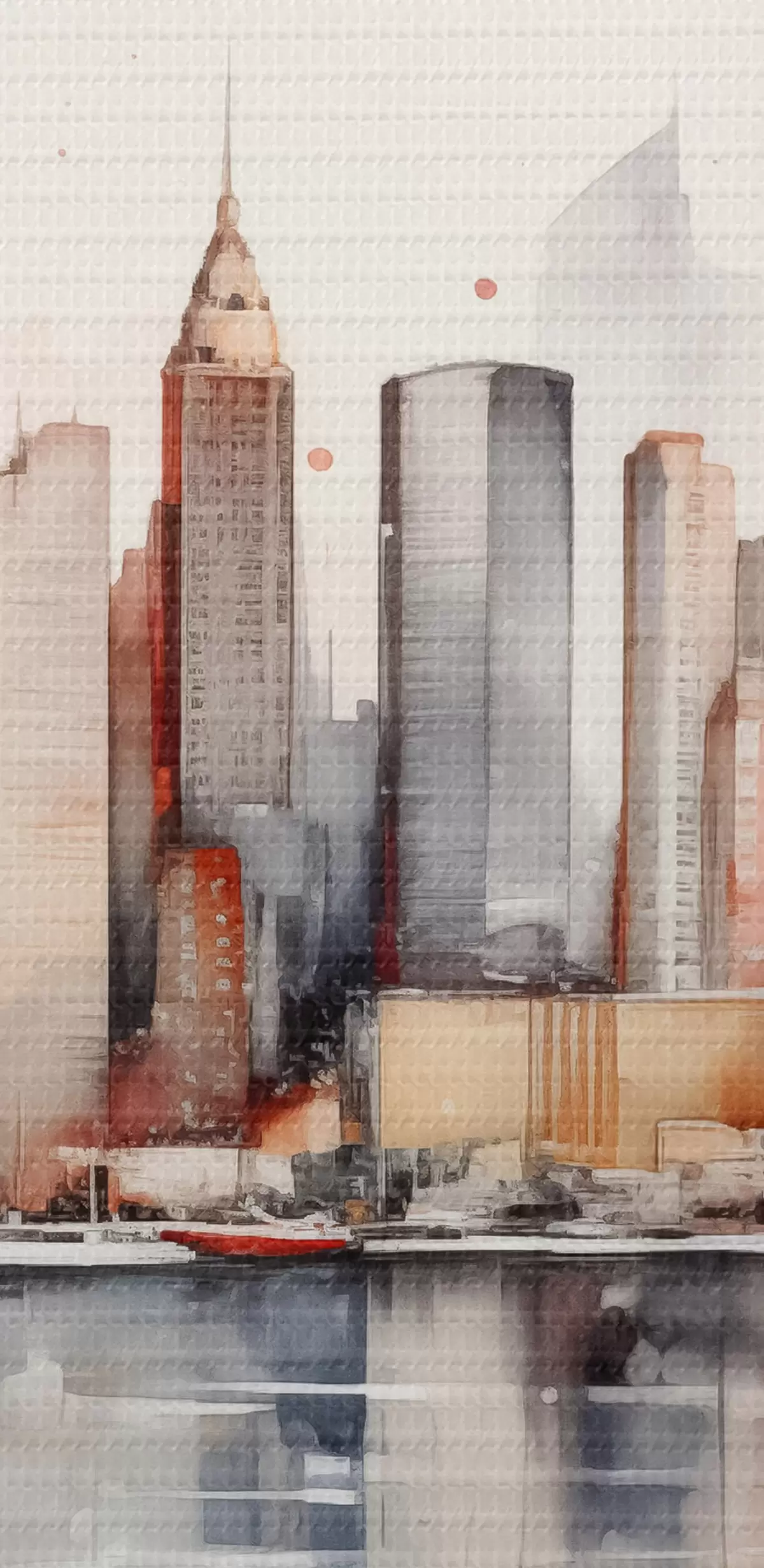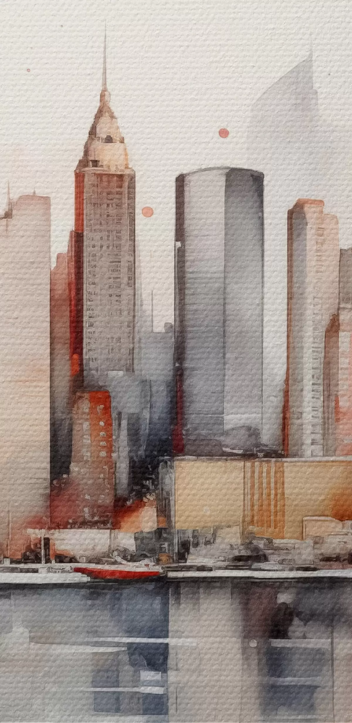 Runde Wandbilder Blick auf New York City, Gebäudesilhouetten, Aquarell Nr r39828