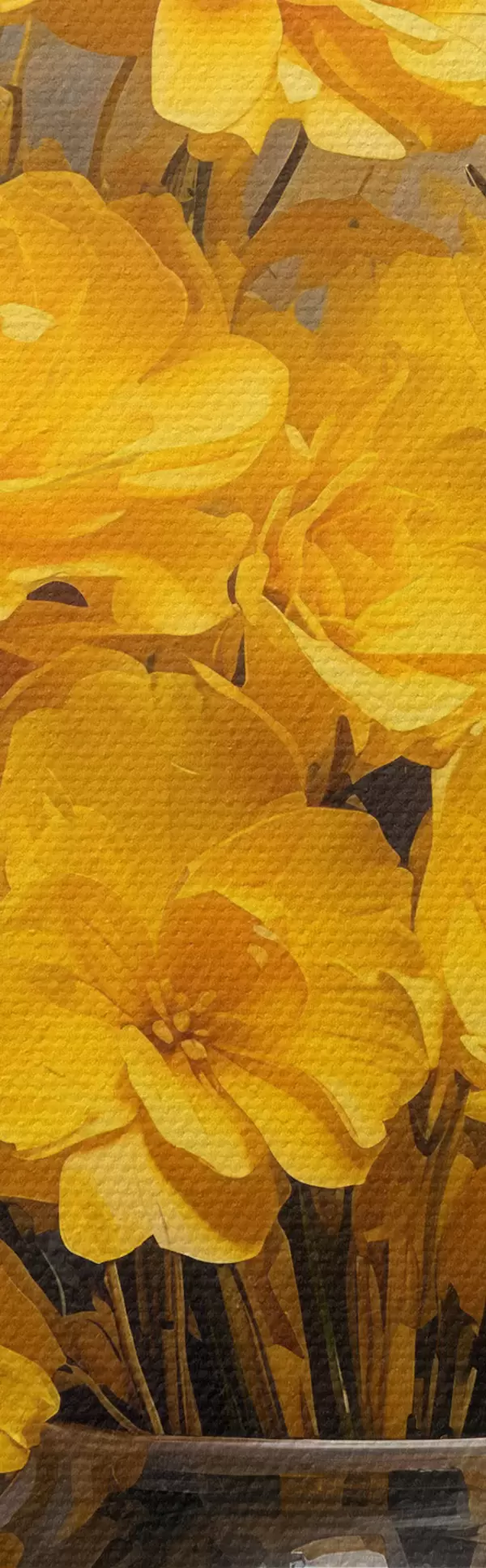 Drei Materialtypen stehen zur Verfügung: Economic Canvas - ein dichtes und haltbares Material für den Digitaldruck, identisch mit Malerleinwand, wasserfeste Oberfläche, realistische Wiedergabe von Details, mittelkörniges Material. Premium Canvas - die Textur ähnelt der einer Malerleinwand (verwobene kleine Fäden). Weiche, detaillierte Wiedergabe des Bildes auf einer matten Oberfläche. Eco-Premium - hochwertiges Gewebe aus 100% Baumwolle. Dank der natürlichen Baumwollfasern ist das Material langlebig und verschleißfest. Hervorragende Farbwiedergabe und Detailtreue.