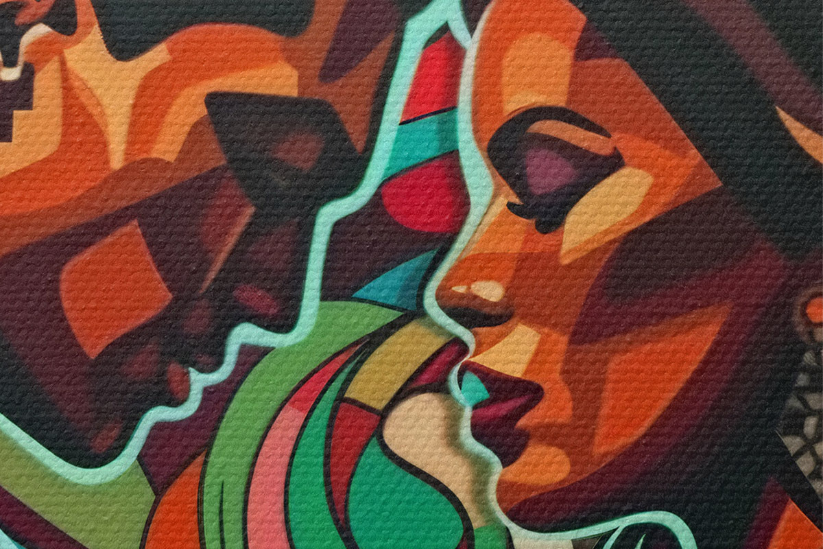 Um die Leinwand auf Keilrahmen zu spannen, ohne das Bild zu beschädigen, verwenden wir ein gespiegeltes Bild.