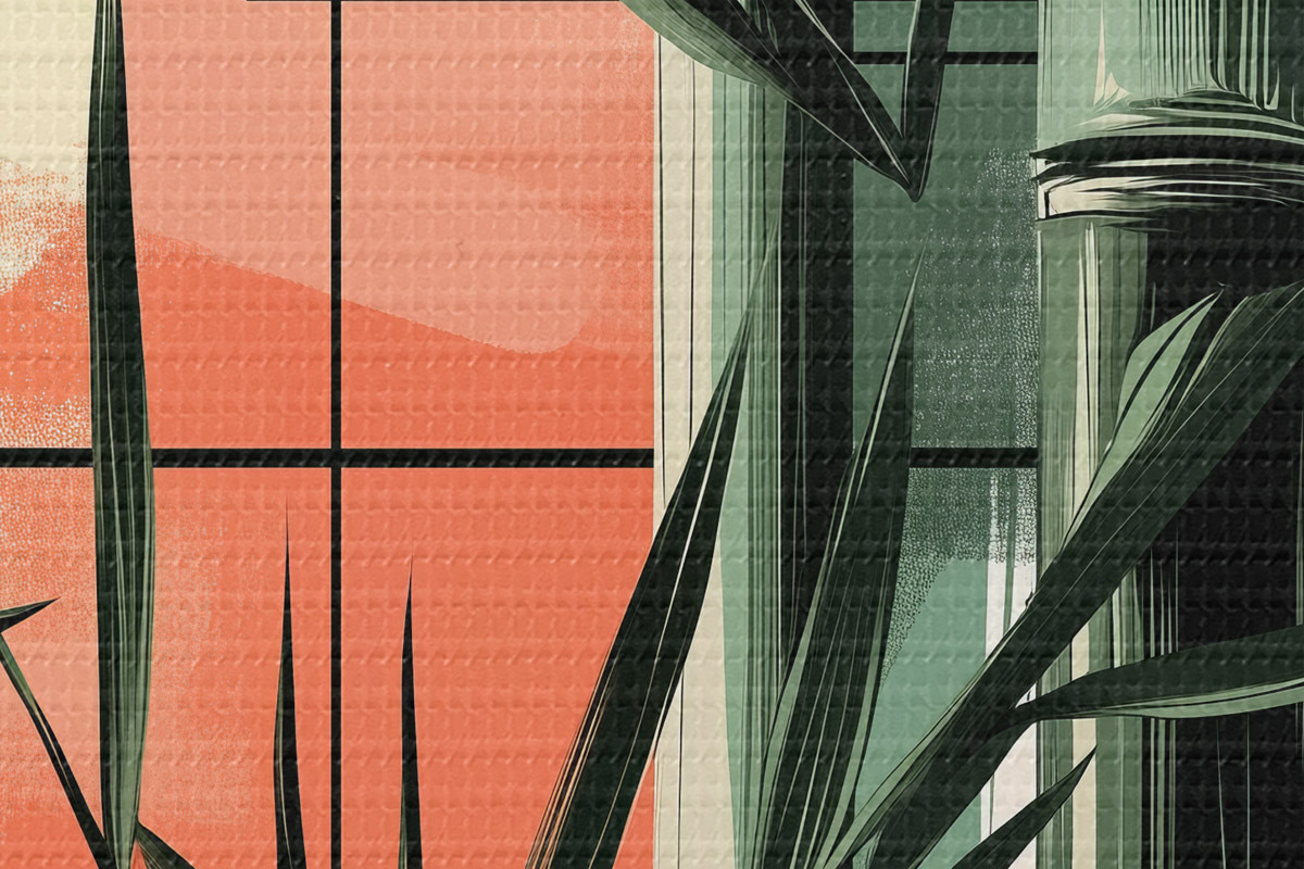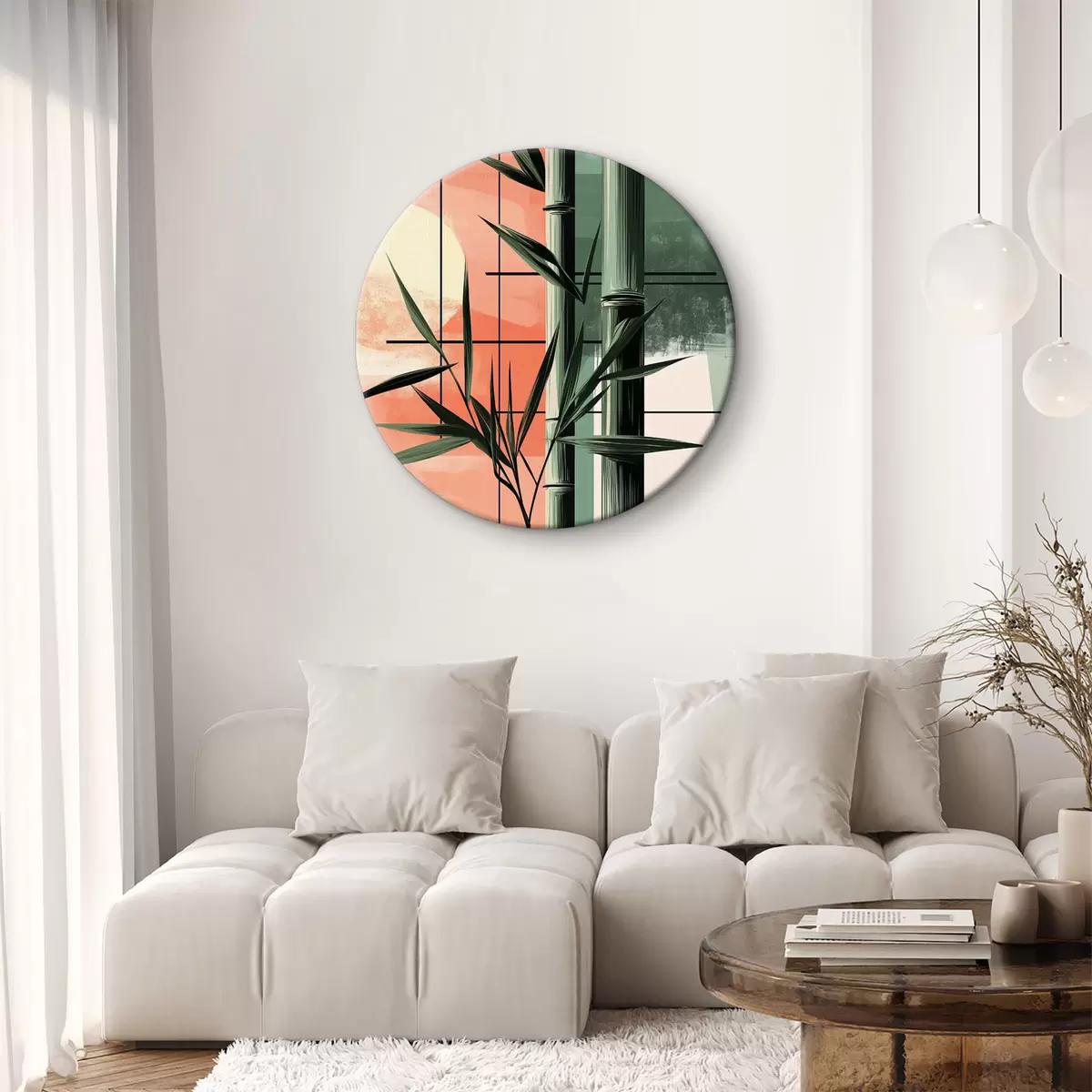 Runde Wandbilder Abstrakt mit Bambus und Sonne r39898