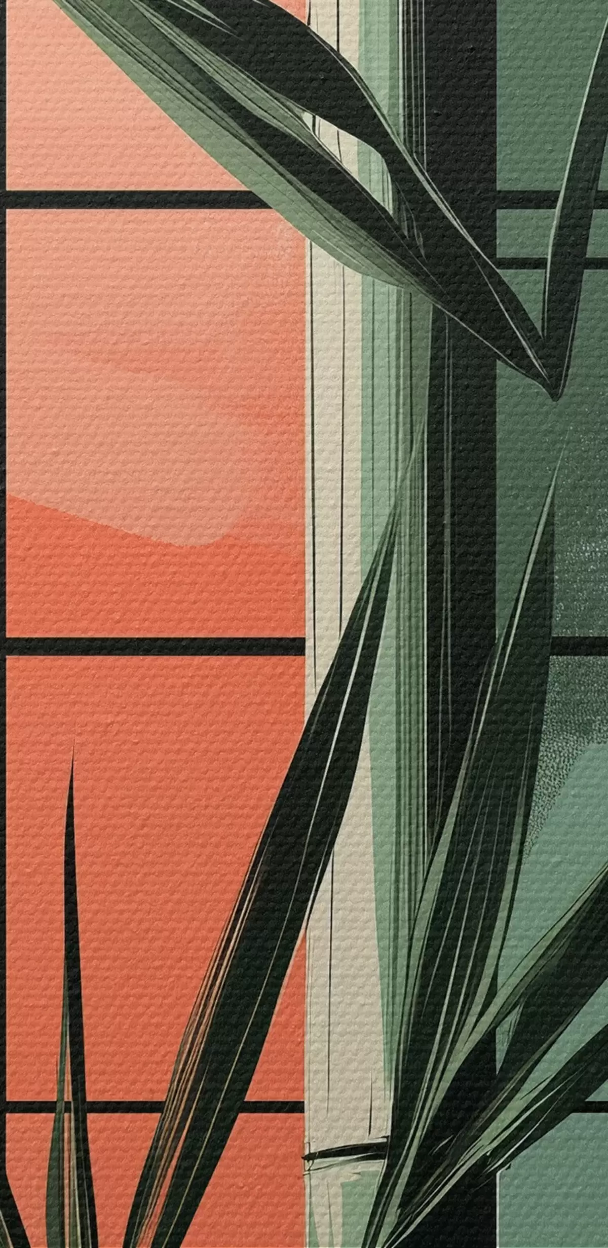 Runde Wandbilder Abstrakt mit Bambus und Sonne Nr r39898