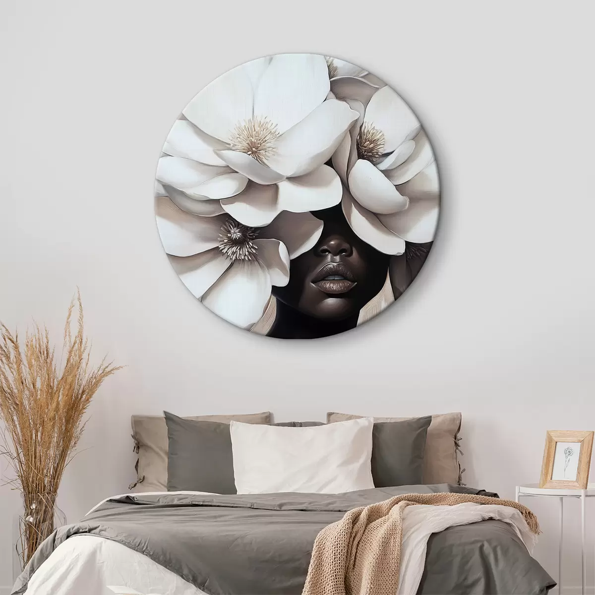 Runde Wandbilder Eine Frau mit Blumen auf dem Kopf r39899