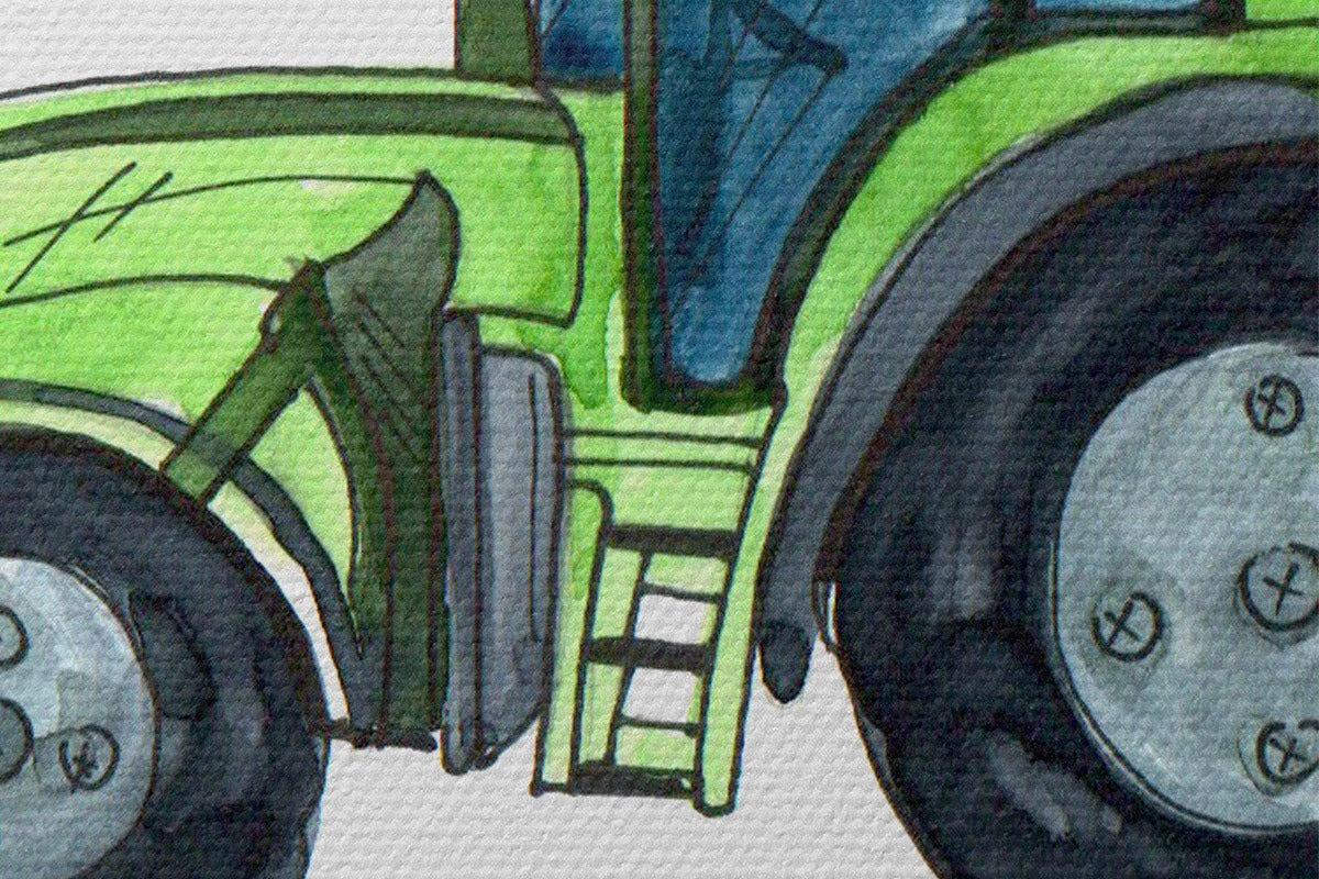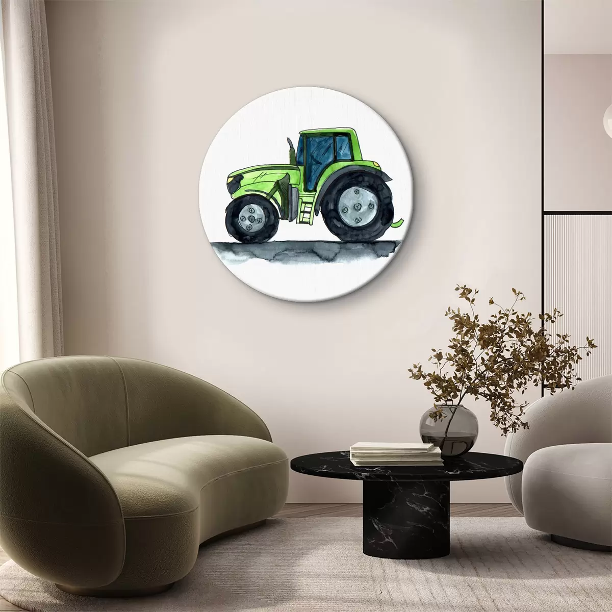Runde Wandbilder Aquarell grüner Traktor Nr r39903