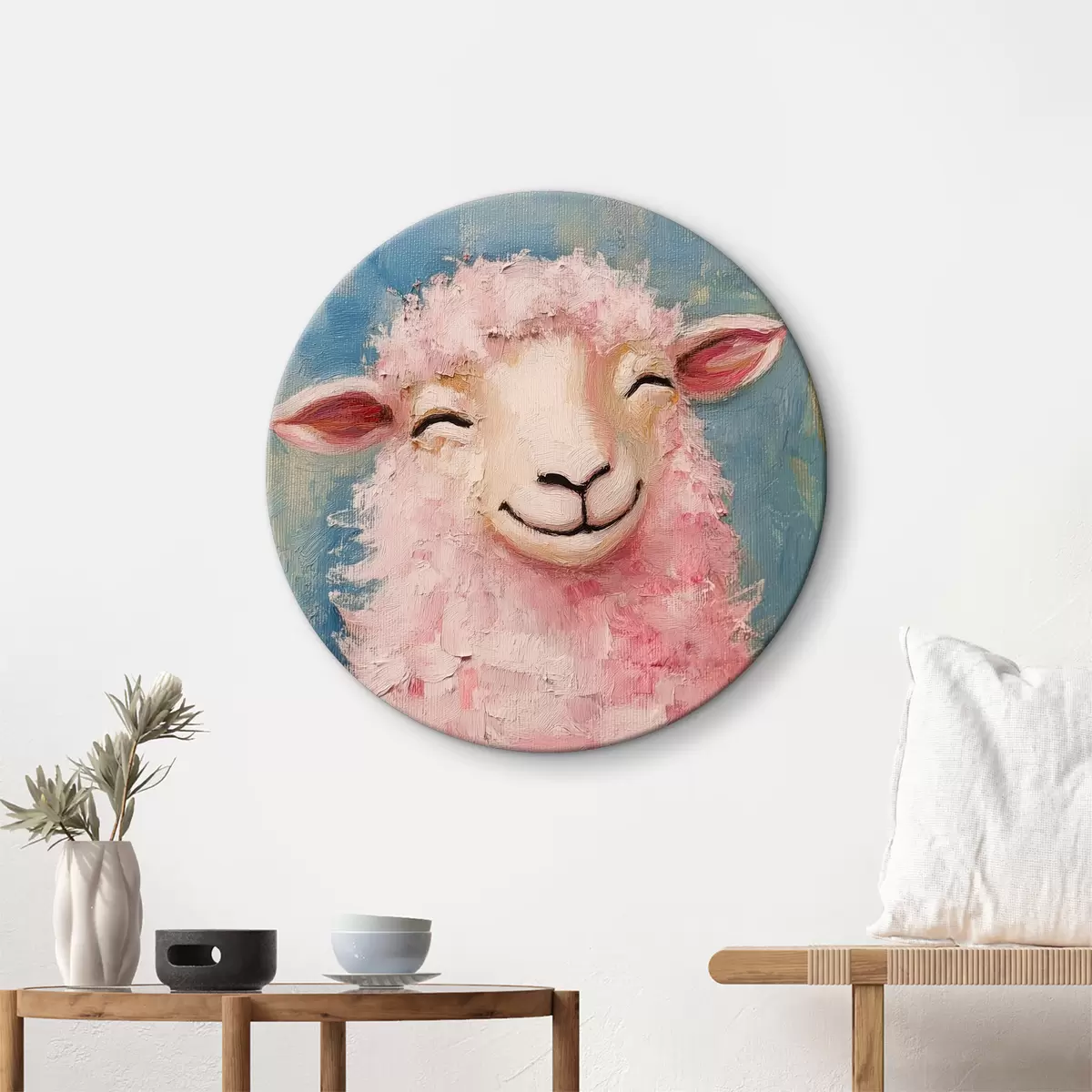Runde Wandbilder Fröhlicher Widder mit rosa Wolle Nr r39911
