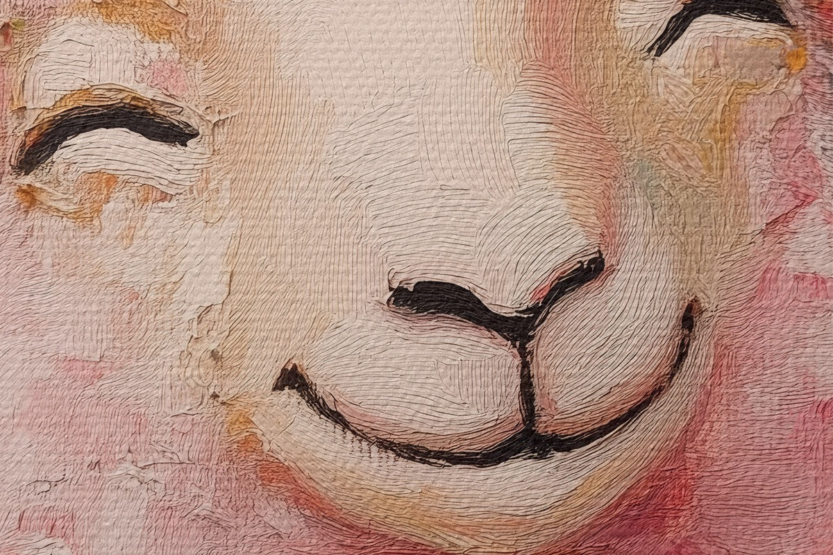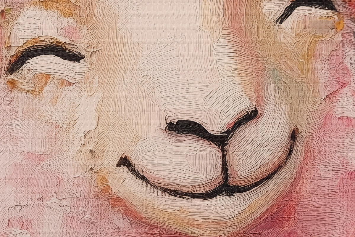 Runde Wandbilder Fröhlicher Widder mit rosa Wolle r39911