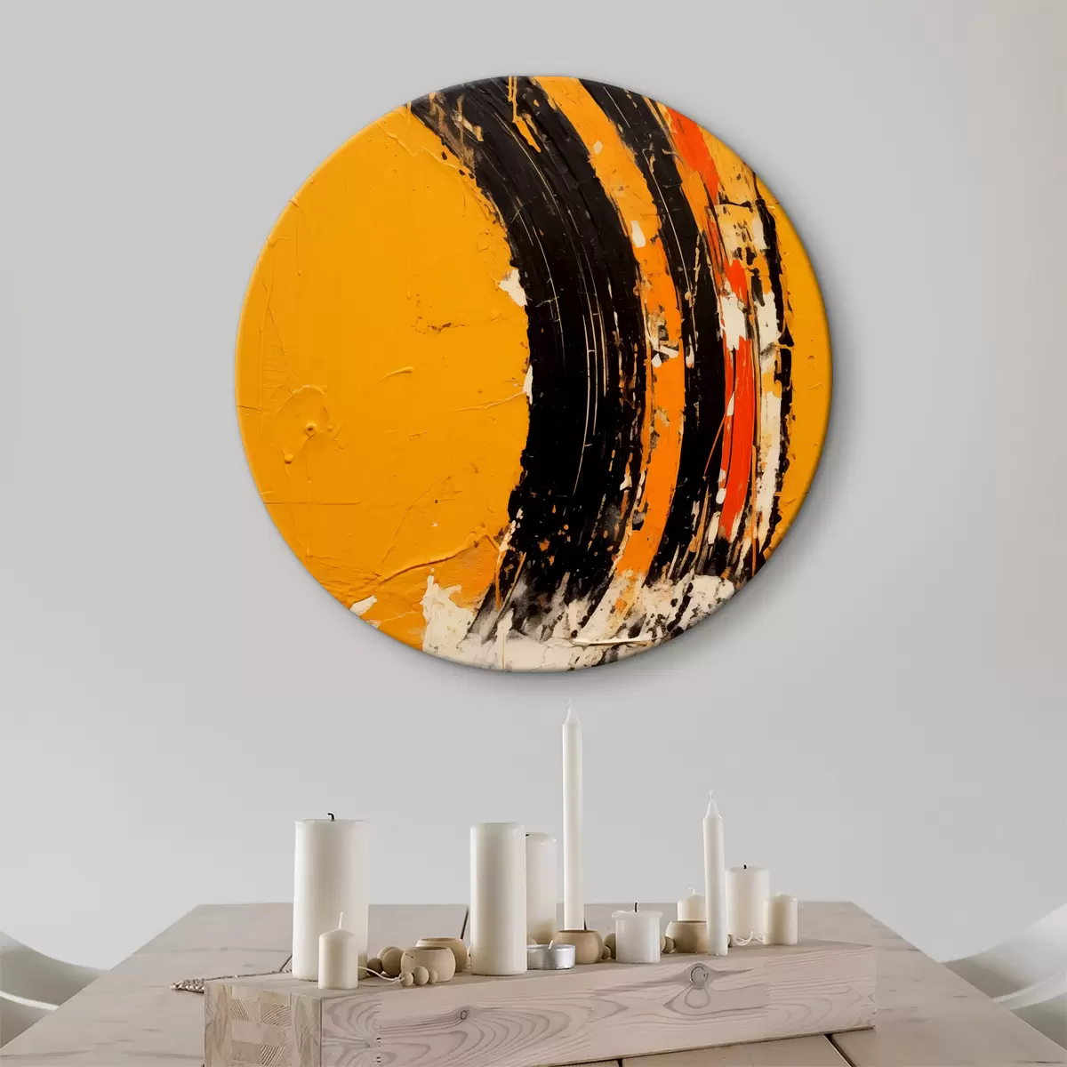 Runde Wandbilder Abstrakte schwarze Streifen auf gelbem Ölgemälde Nr r39923