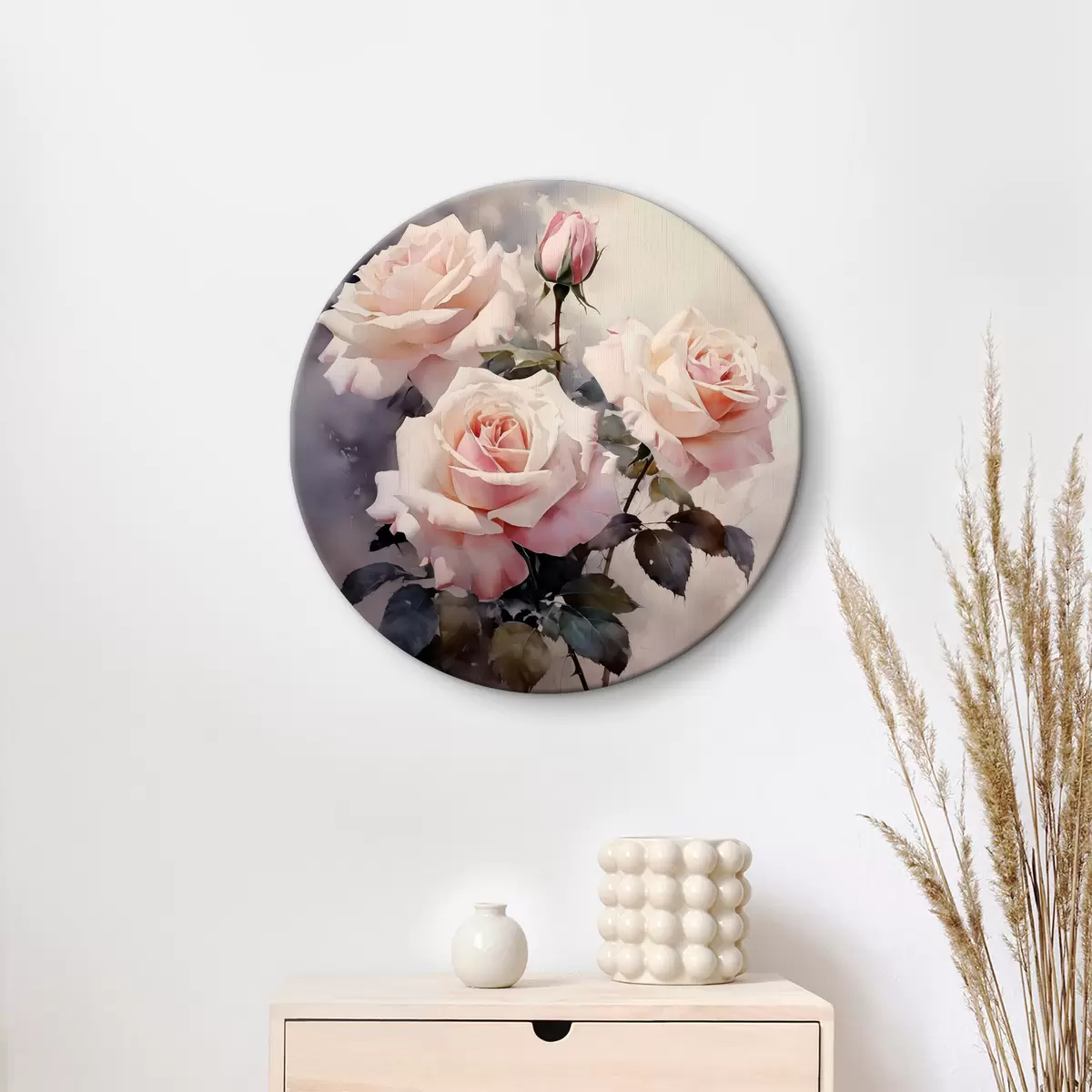 Runde Wandbilder Weiße rosa Rosen auf dunklem Hintergrund Aquarell Nr r39927