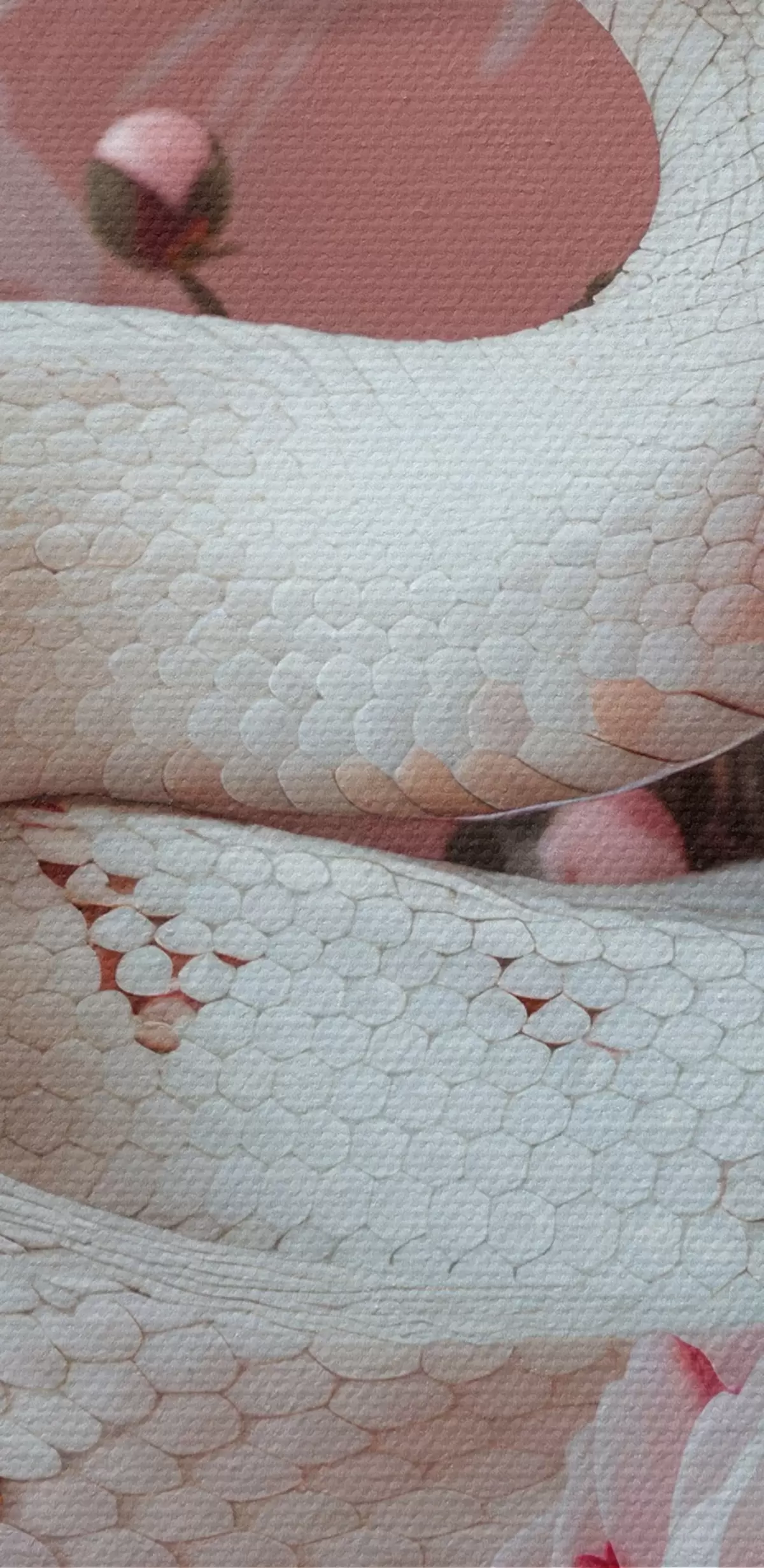 Runde Wandbilder Weiße Schlange und rosa Blumen Nr r39941