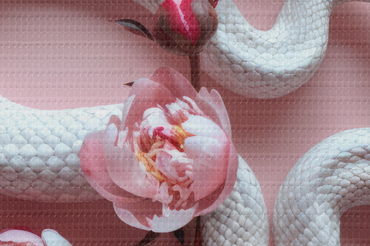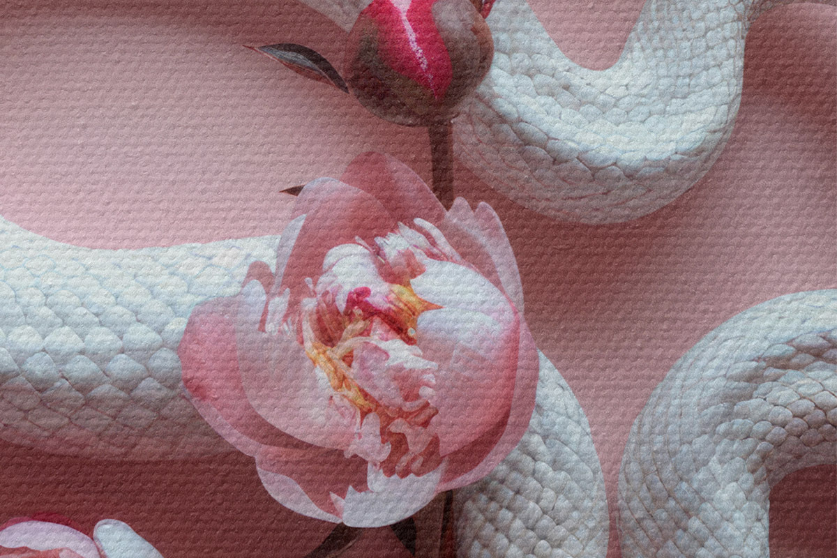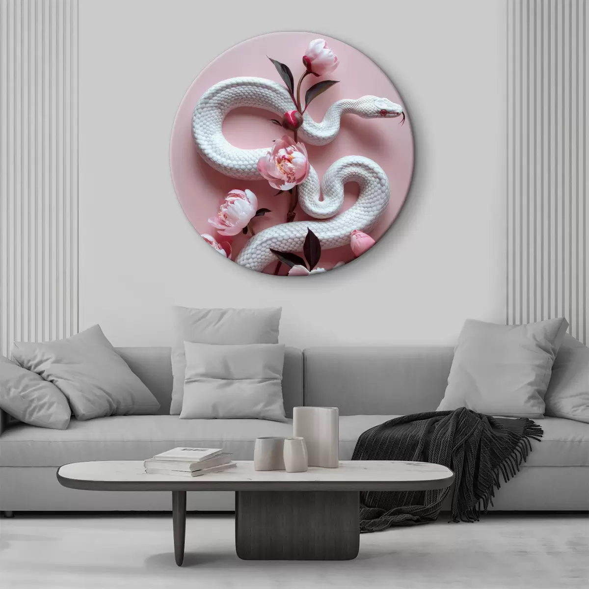 Runde Wandbilder Pfingstrosen und weiße Schlange r39942