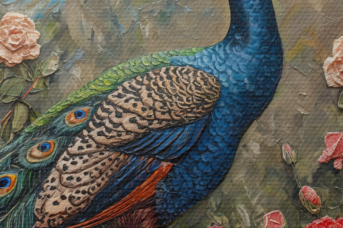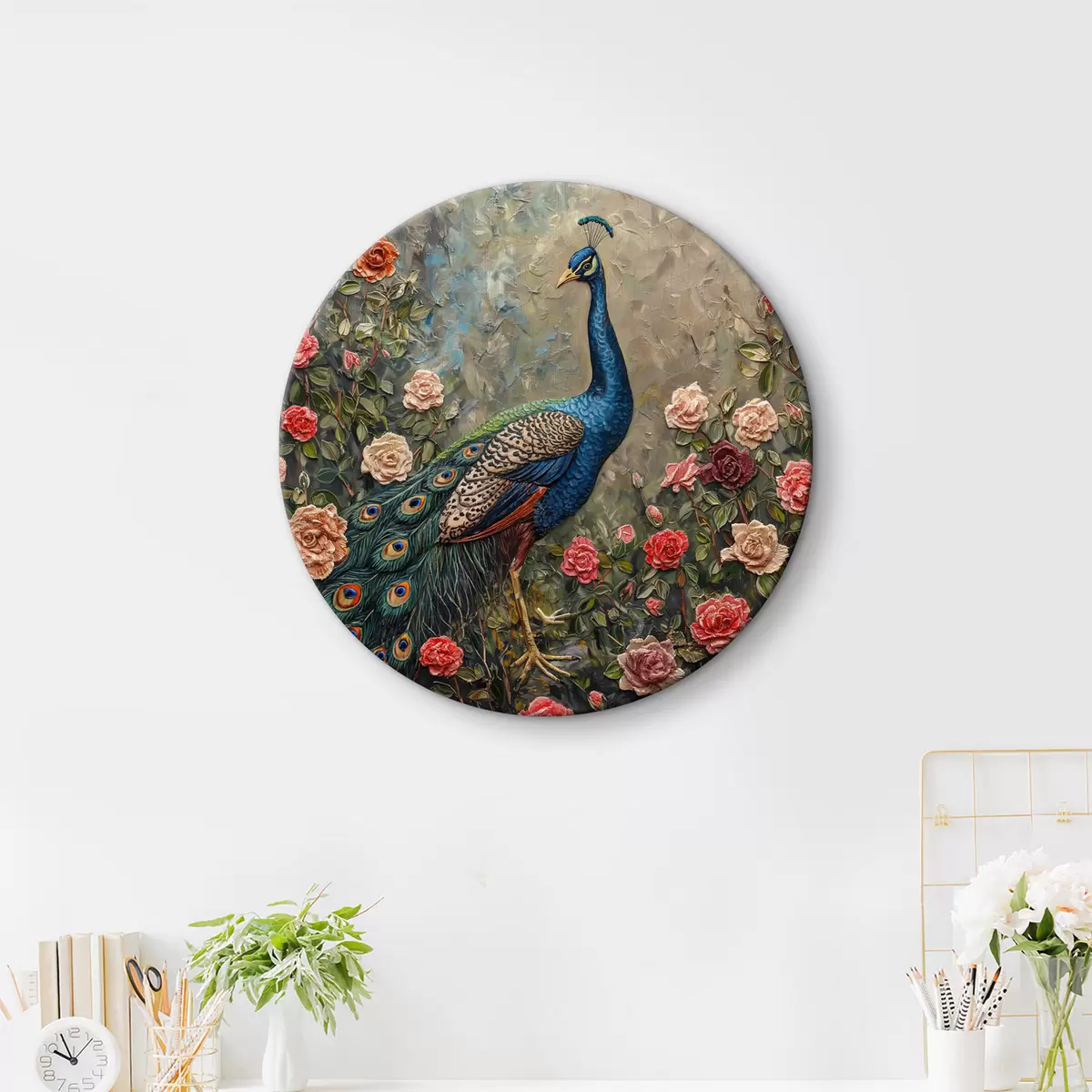 Runde Wandbilder Pfau, handwerkliche Blumen, Garten r39959