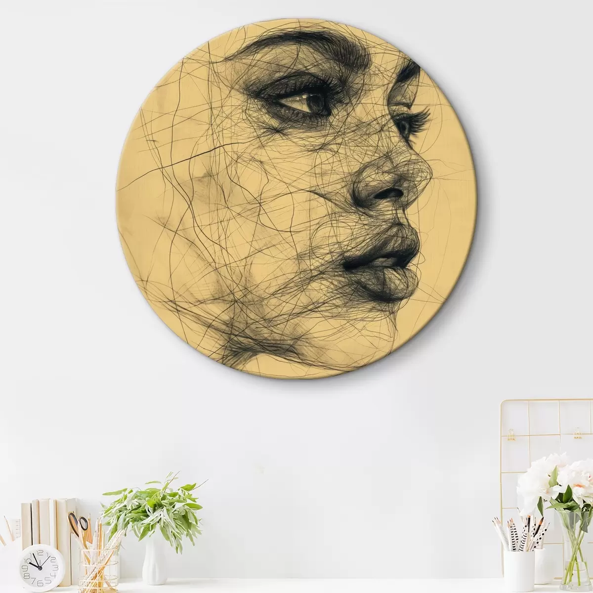 Runde Wandbilder Linie, Gesicht, Mädchen Nr r39962