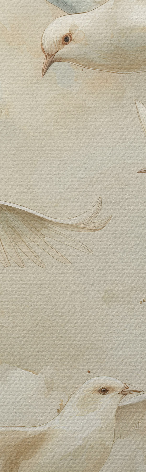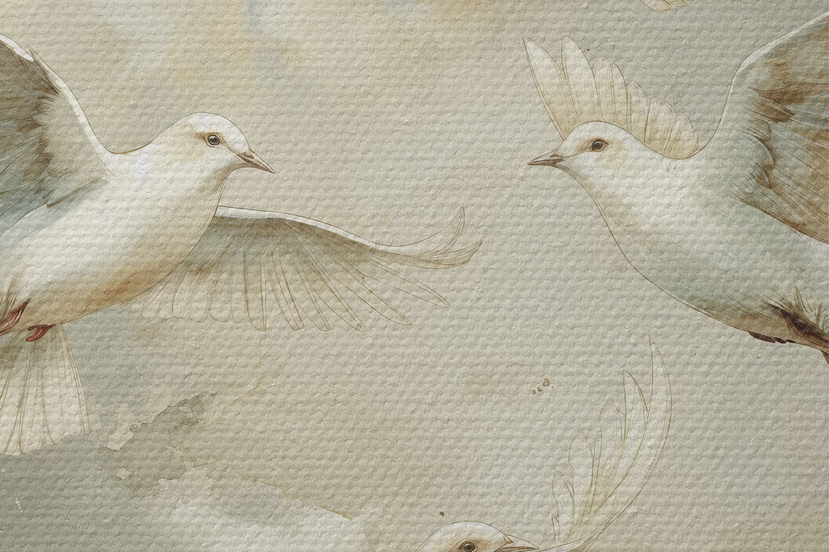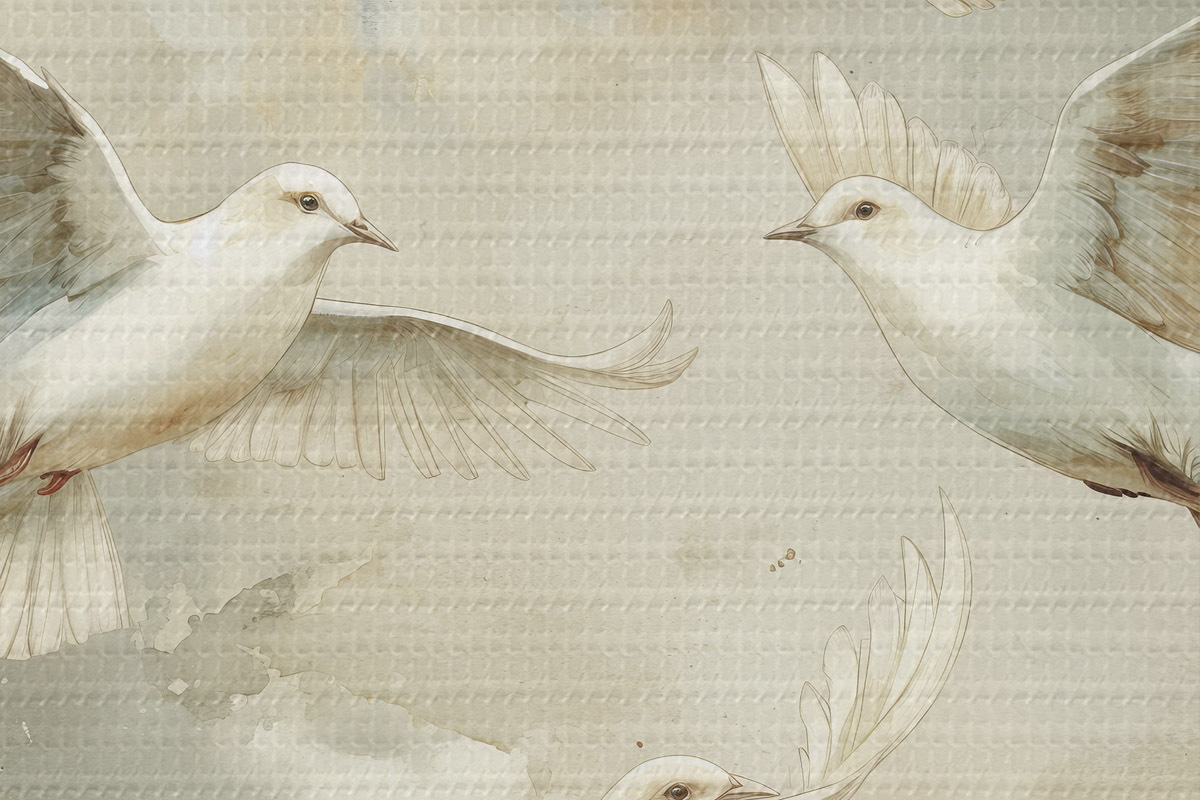 Runde Wandbilder Aquarell fliegende Vögel, sanfte Beige- und Weißtöne, Tauben r39976