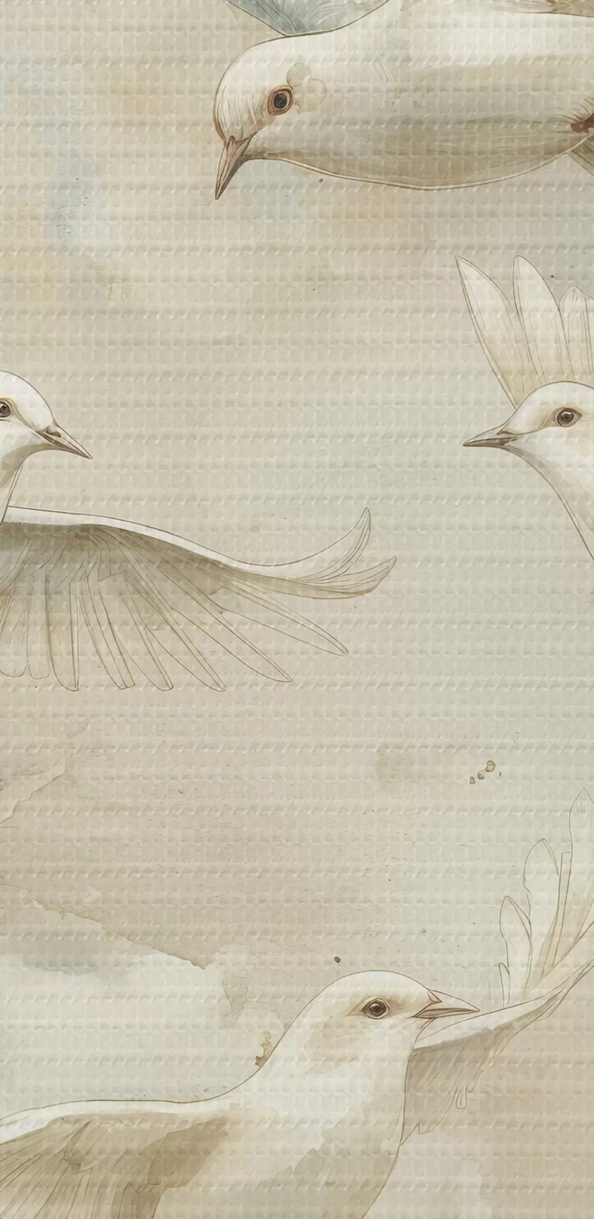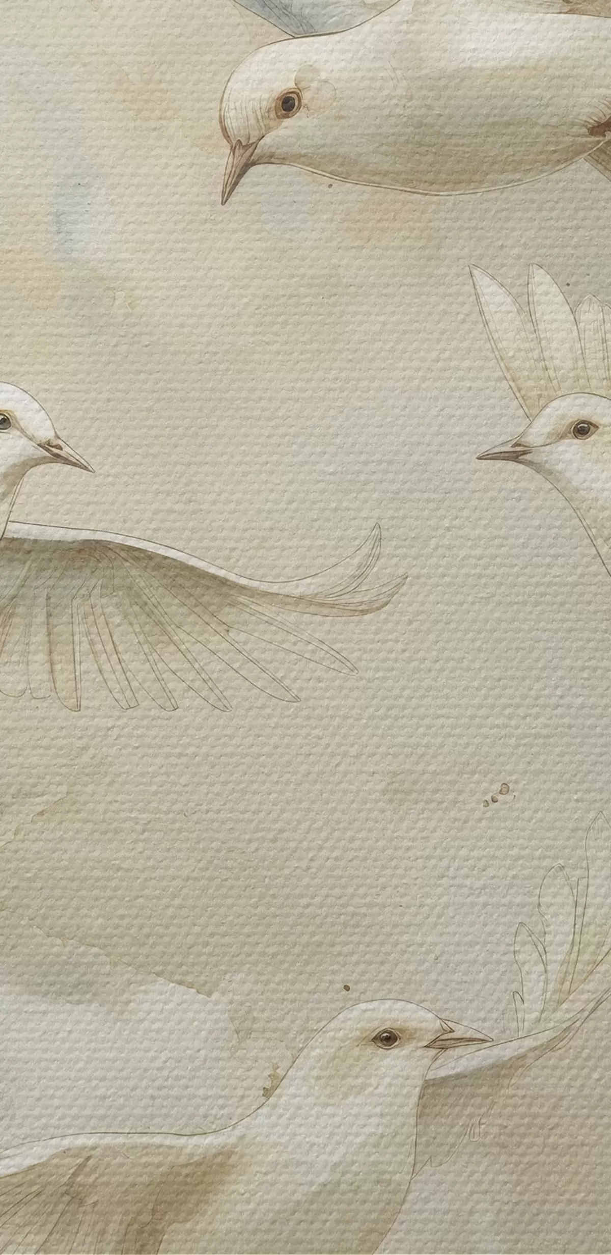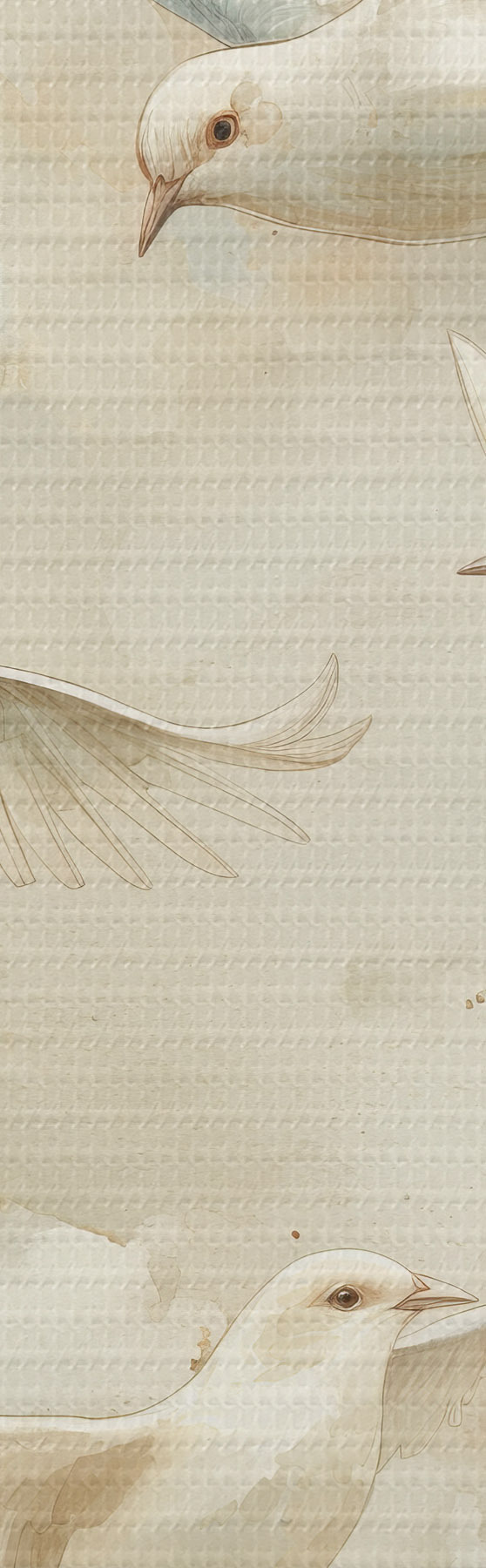 Runde Wandbilder Aquarell fliegende Vögel, sanfte Beige- und Weißtöne, Tauben r39976