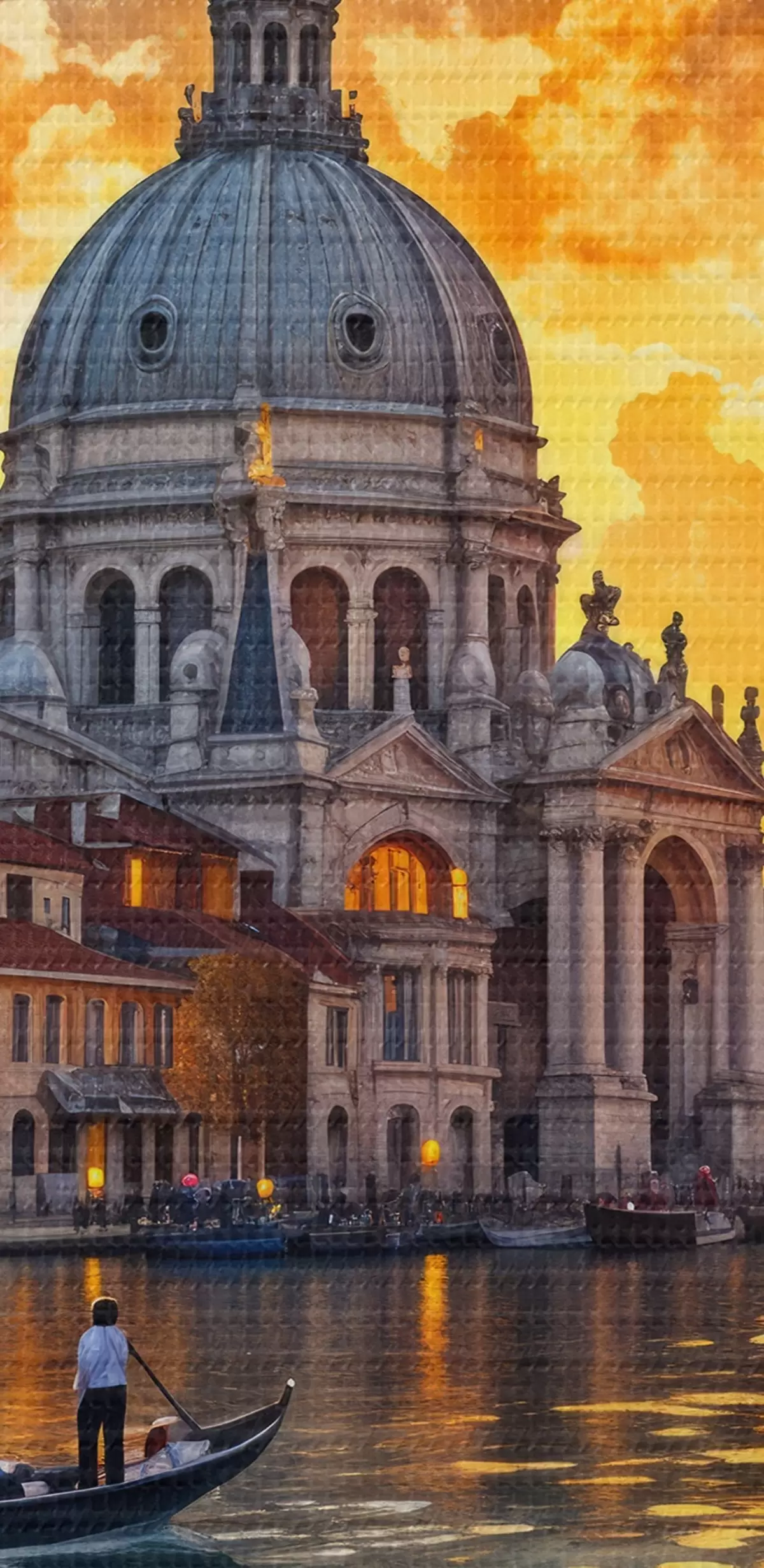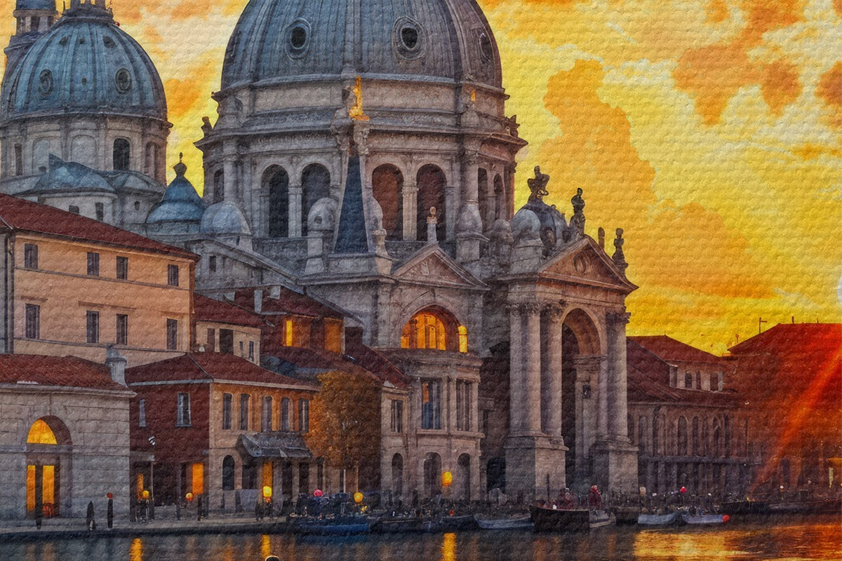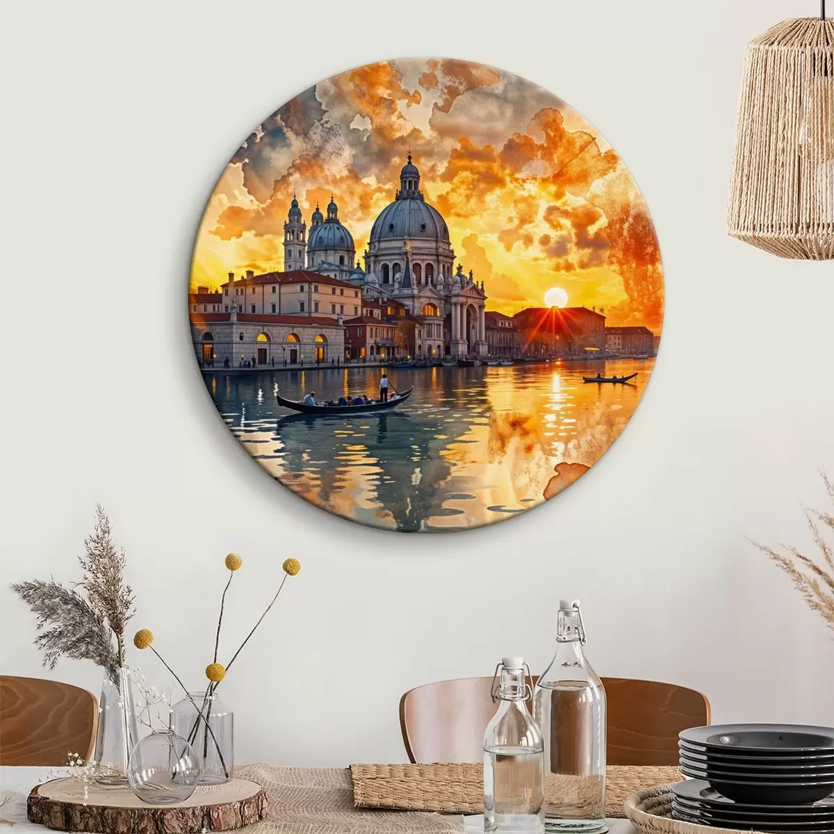 Runde Wandbilder Ein farbenfroher und dramatischer Sonnenuntergang über dem Canale Grande in Venedig, Italien, Aquarellkunst r40027