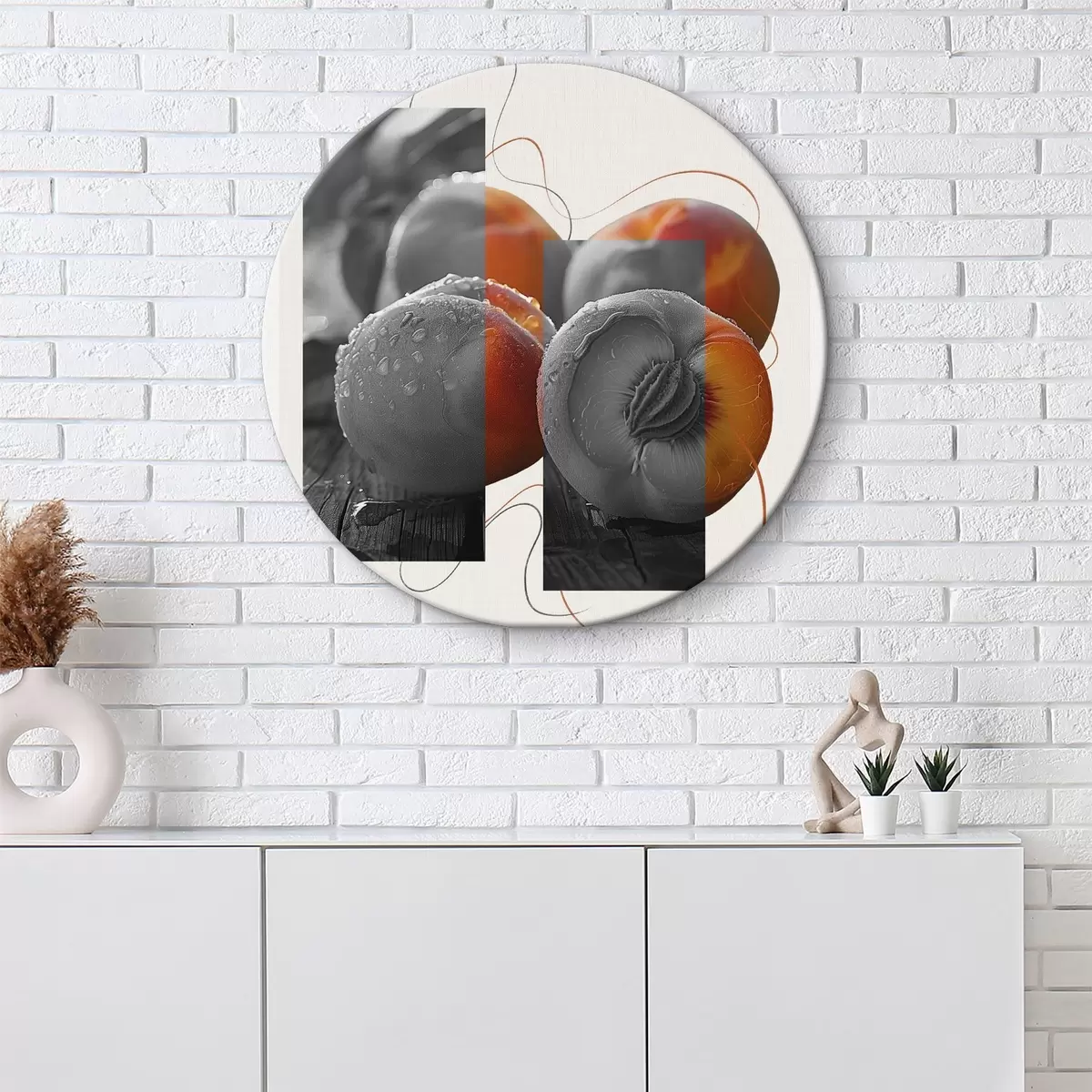 Runde Wandbilder Abstrakte Kunst mit saftigen Pfirsichen, Fotorealismus, Sommerfrüchten r40042