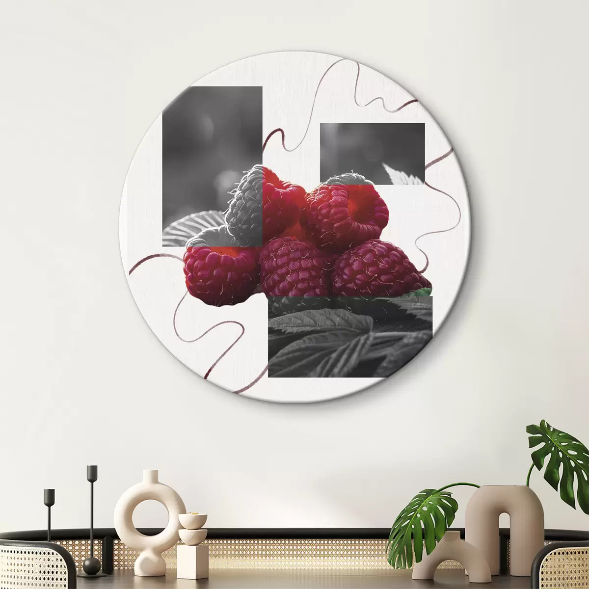 Runde Wandbilder Himbeeren, abstrakte Kunst, Fotorealismus, Sommerbeeren r40045