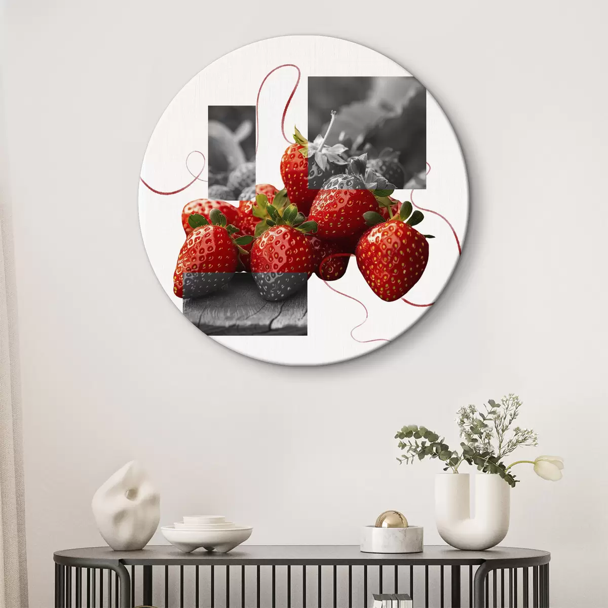 Runde Wandbilder Erdbeeren, abstrakte Kunst, Fotorealismus, Sommerbeeren r40046