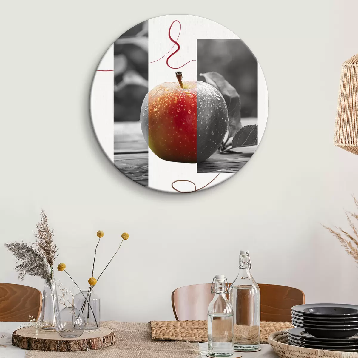 Runde Wandbilder Abstrakte Kunst mit saftigem Apfel, Fotorealismus, Sommerfrüchten Nr r40048