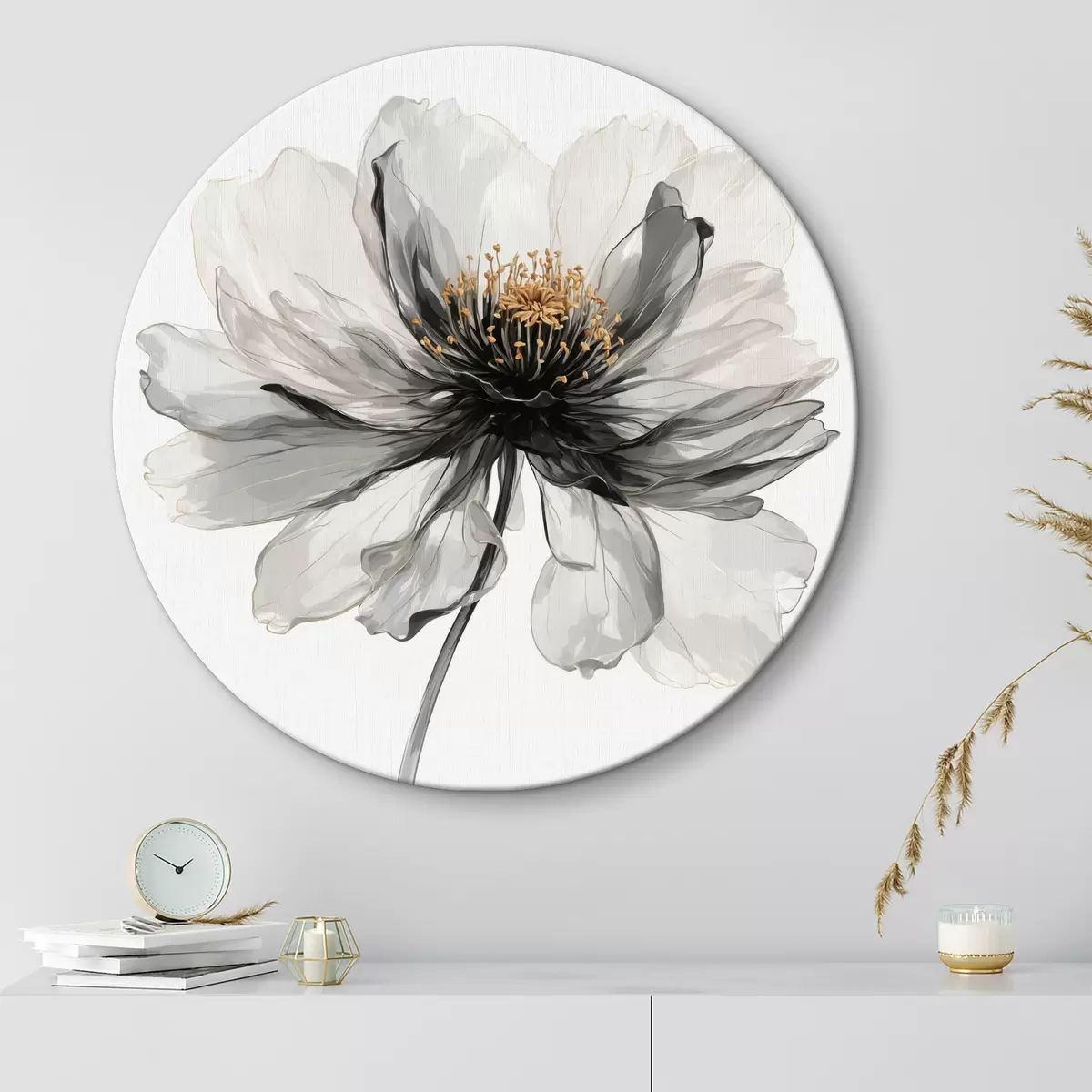 Runde Wandbilder Transparente schwarze Blume auf weißem Hintergrund r40066