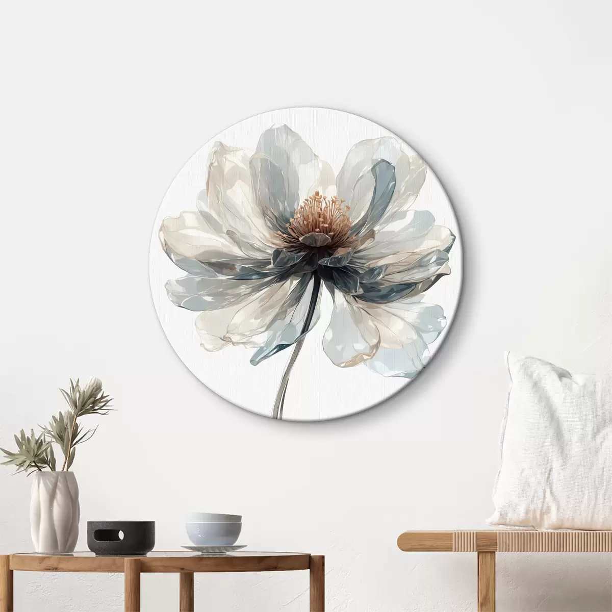Runde Wandbilder Transparente blaue Blume auf weißem Hintergrund r40067