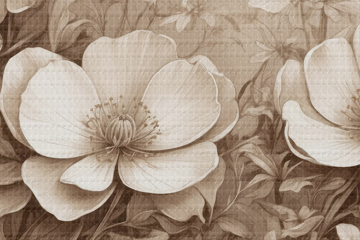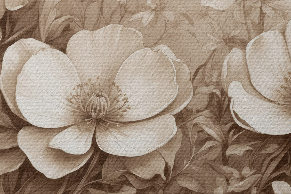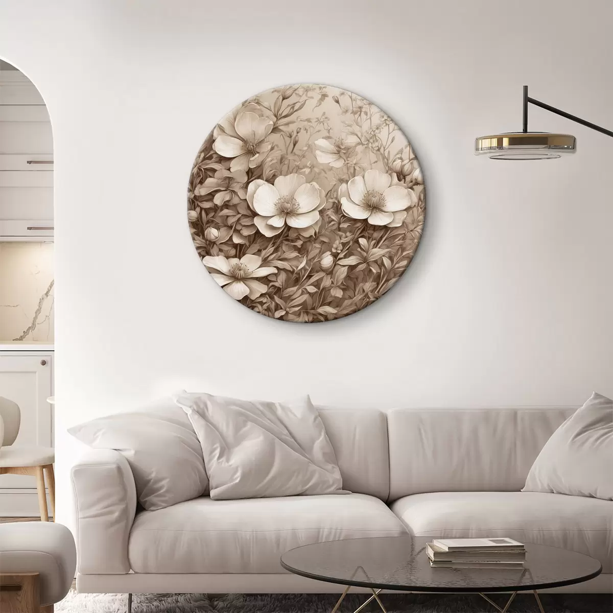 Runde Wandbilder Blüten und Blätter in Sepia r40072