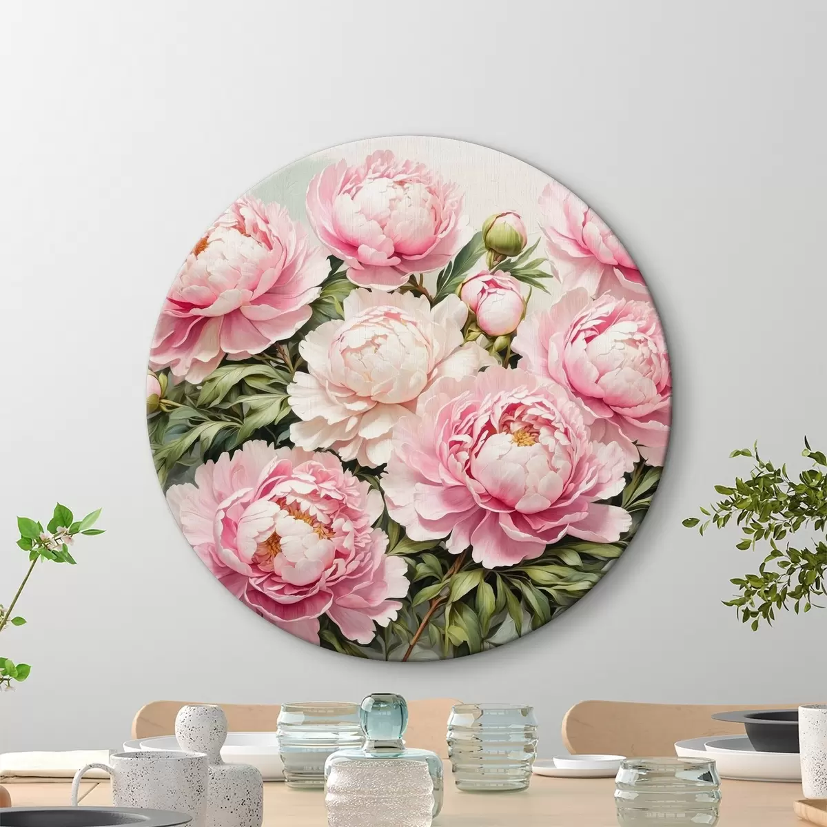 Runde Wandbilder Rosa Blüten und Blätter auf blau-weißem Hintergrund Nr r40074