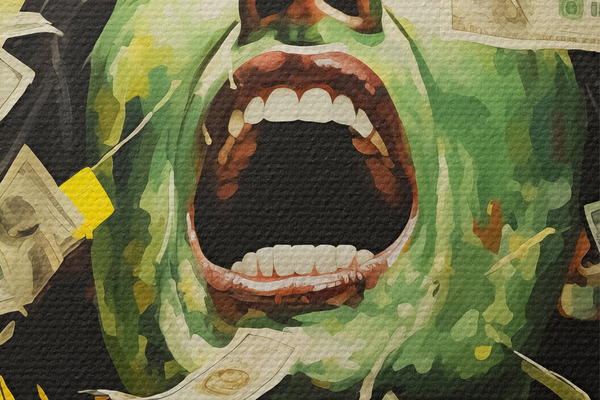 Runde Wandbilder Porträt einer grünen Frau auf gelbem Grund, Schrei, Papierrechnungen, Geldimitation eines Ölgemäldes r40096