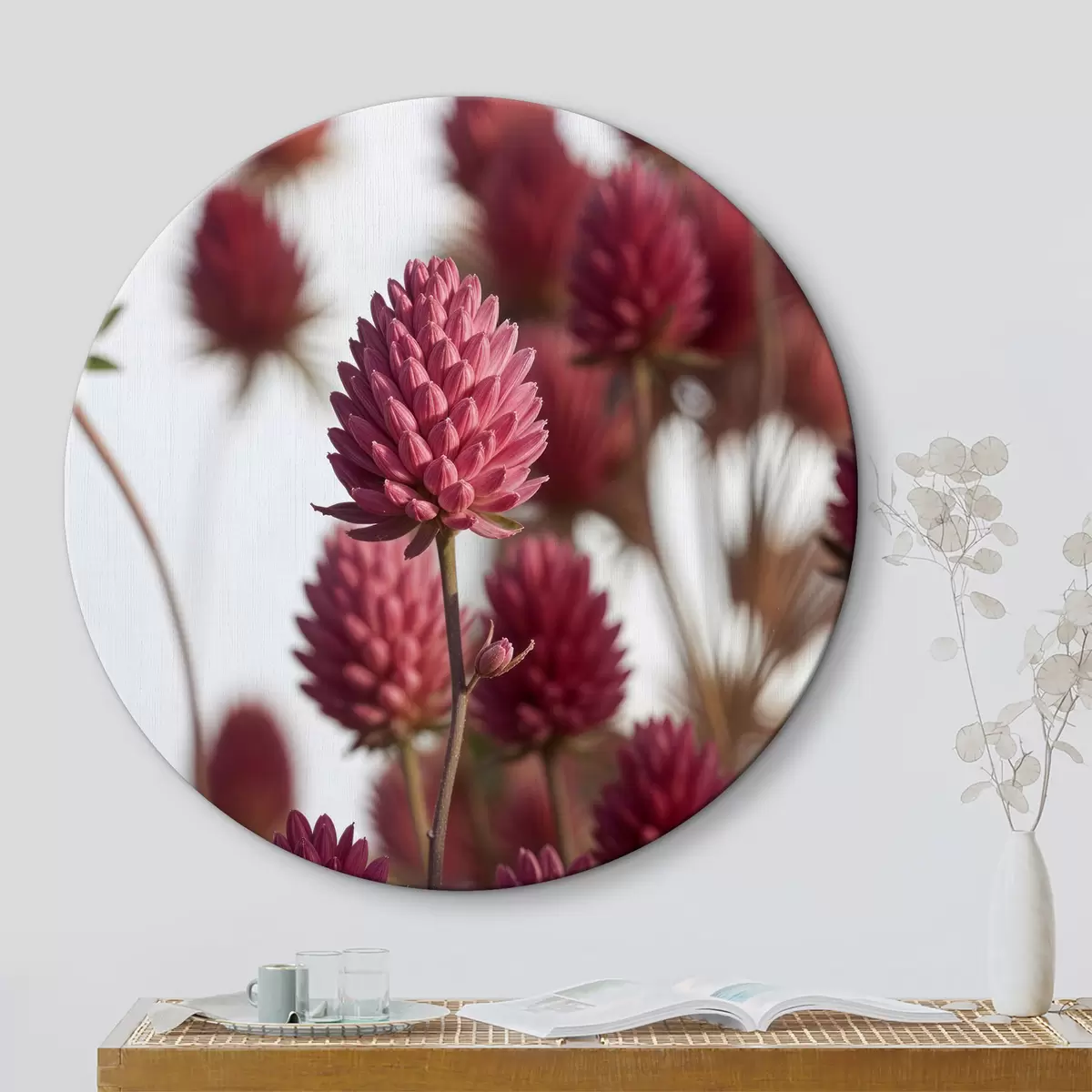 Runde Wandbilder Nahaufnahme von leuchtend roten Dahlienblüten vor unscharfem Hintergrund r40157