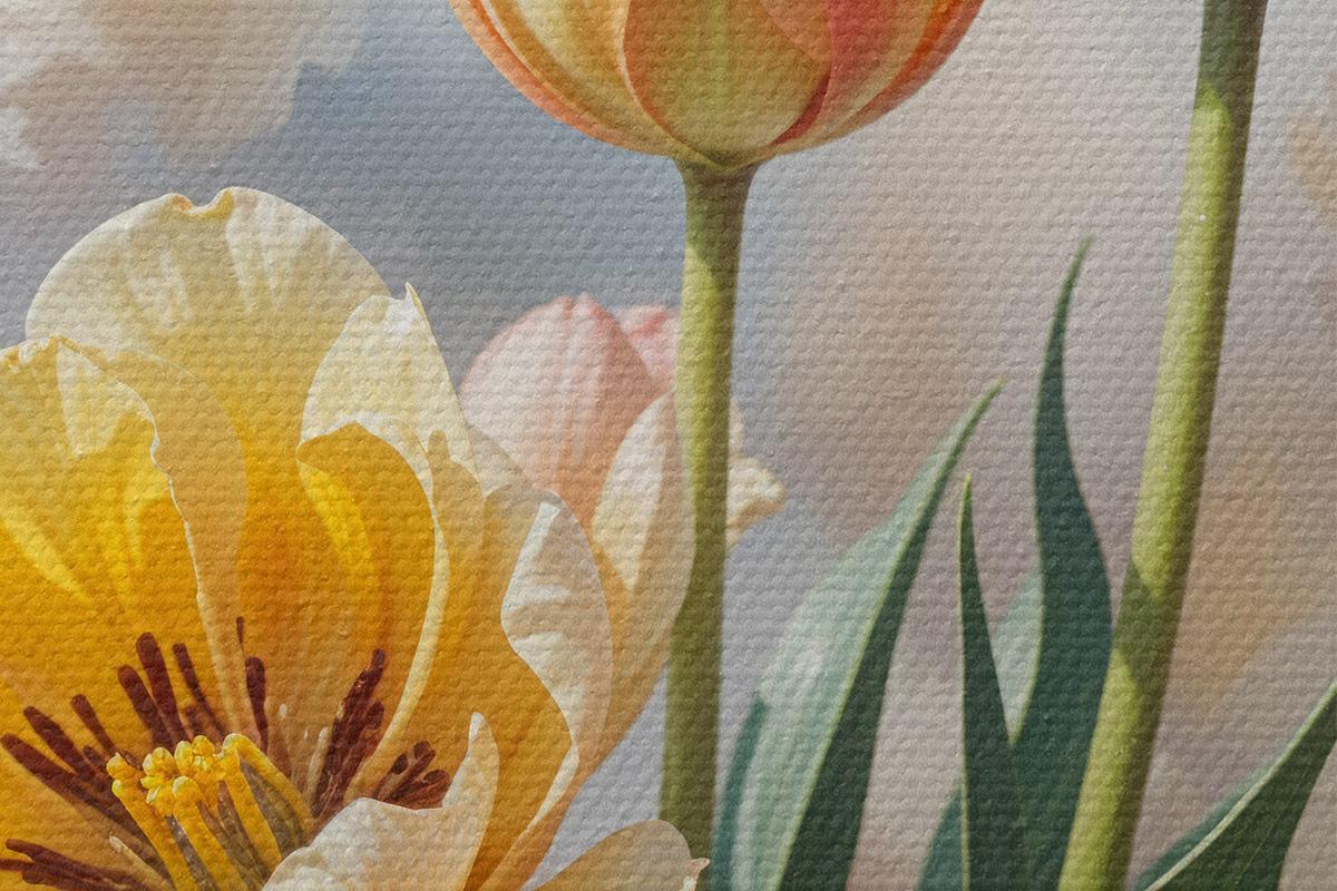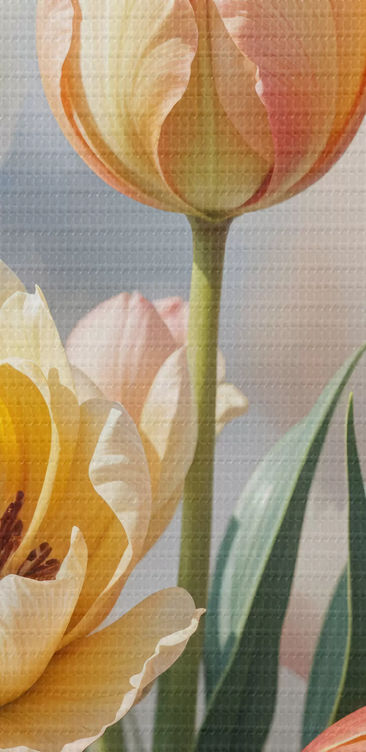Drei Materialtypen stehen zur Verfügung: Economic Canvas - ein dichtes und haltbares Material für den Digitaldruck, identisch mit Malerleinwand, wasserfeste Oberfläche, realistische Wiedergabe von Details, mittelkörniges Material. Premium Canvas - die Textur ähnelt der einer Malerleinwand (verwobene kleine Fäden). Weiche, detaillierte Wiedergabe des Bildes auf einer matten Oberfläche. Eco-Premium - hochwertiges Gewebe aus 100% Baumwolle. Dank der natürlichen Baumwollfasern ist das Material langlebig und verschleißfest. Hervorragende Farbwiedergabe und Detailtreue.