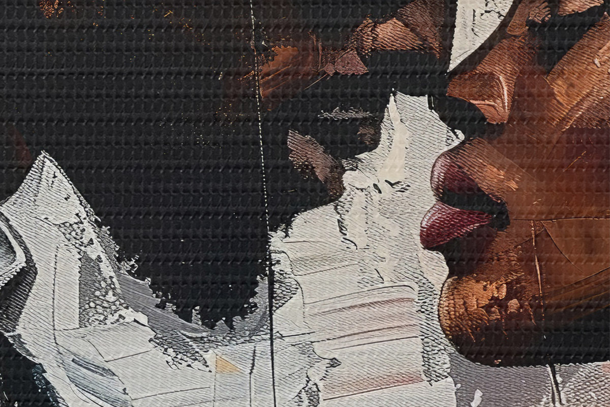 Um die Leinwand auf Keilrahmen zu spannen, ohne das Bild zu beschädigen, verwenden wir ein gespiegeltes Bild.