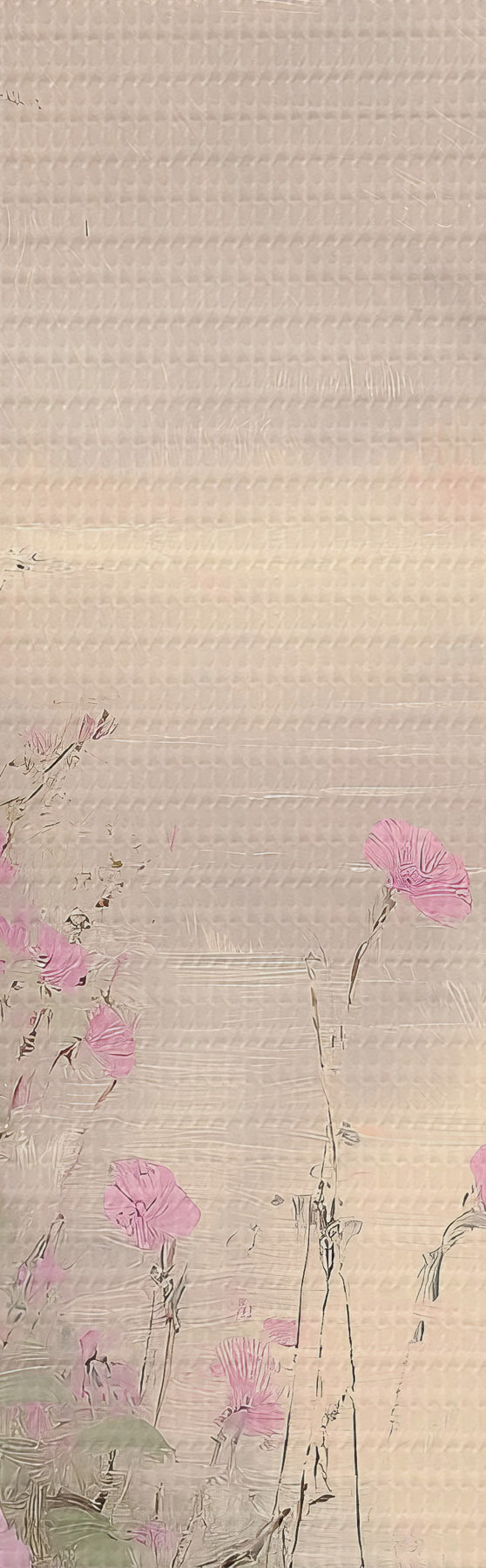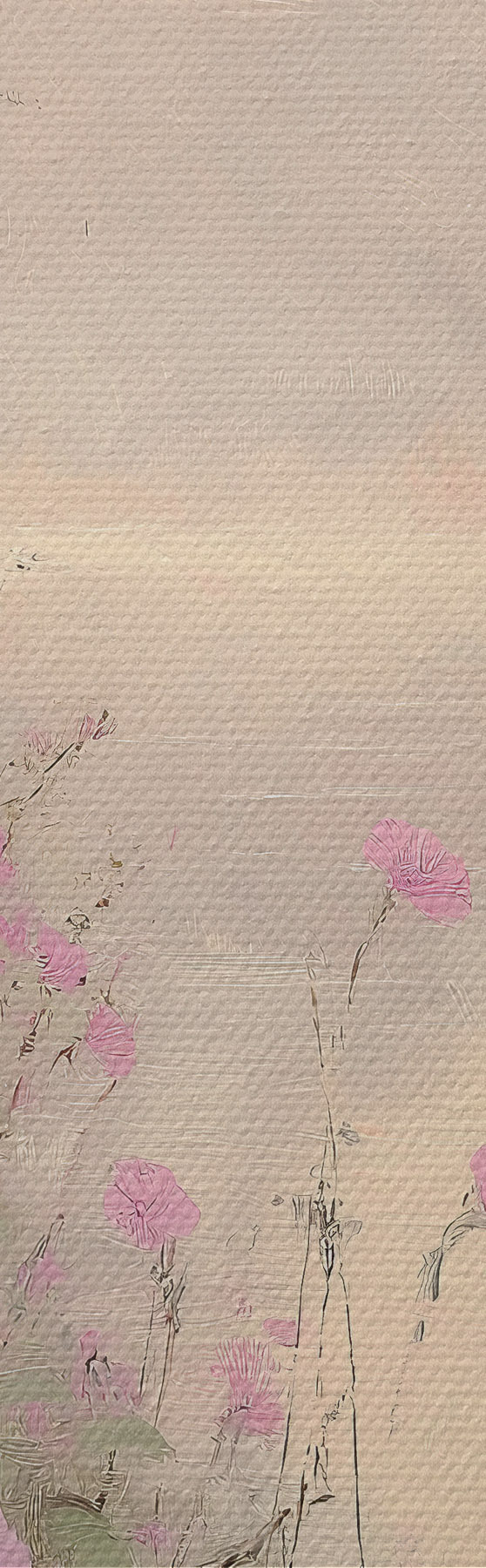 Runde Wandbilder See mit rosa Blumen, Sonnenaufgang, Ölzeichnung, pastellbeige Farben, Nebel Nr r40229