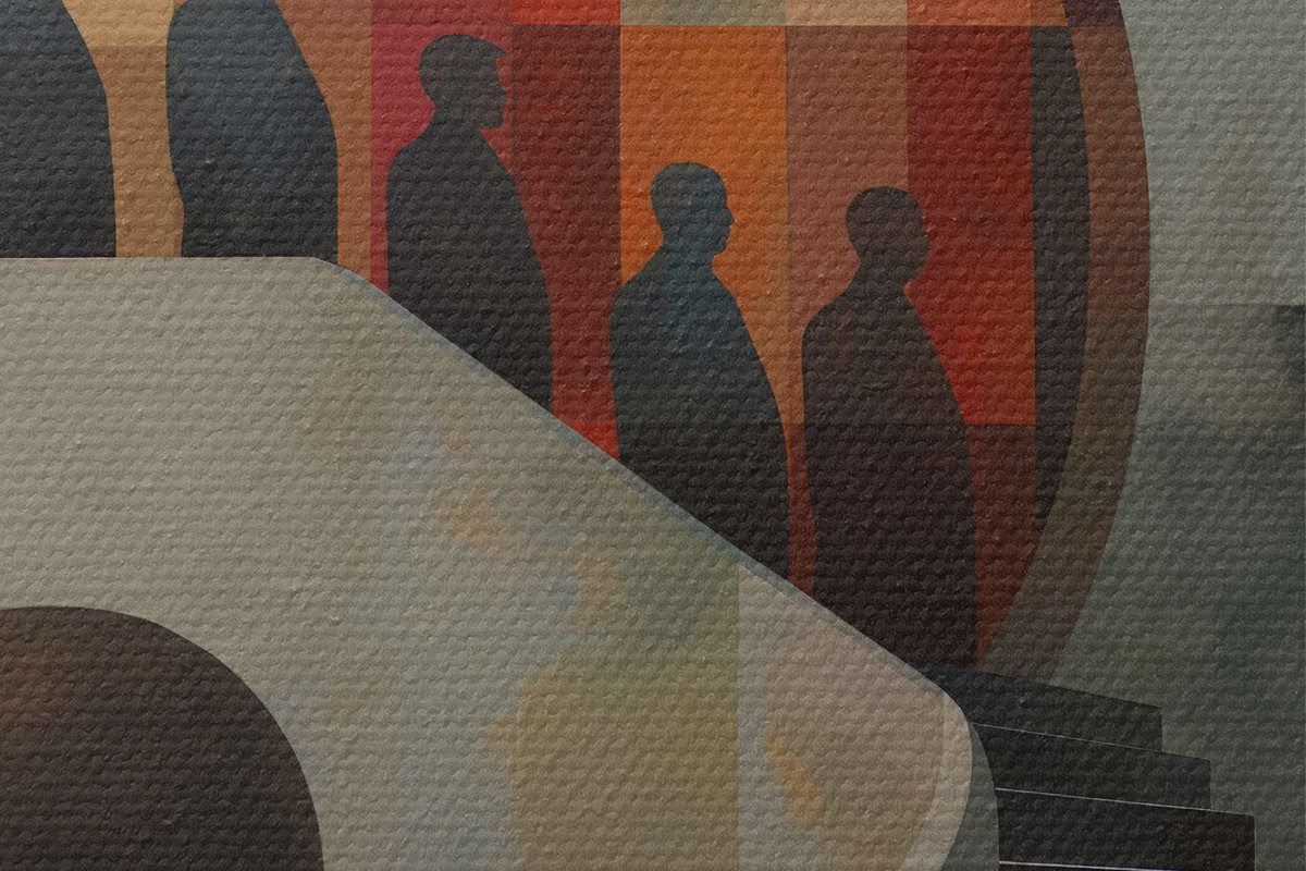 Um die Leinwand auf Keilrahmen zu spannen, ohne das Bild zu beschädigen, verwenden wir ein gespiegeltes Bild.