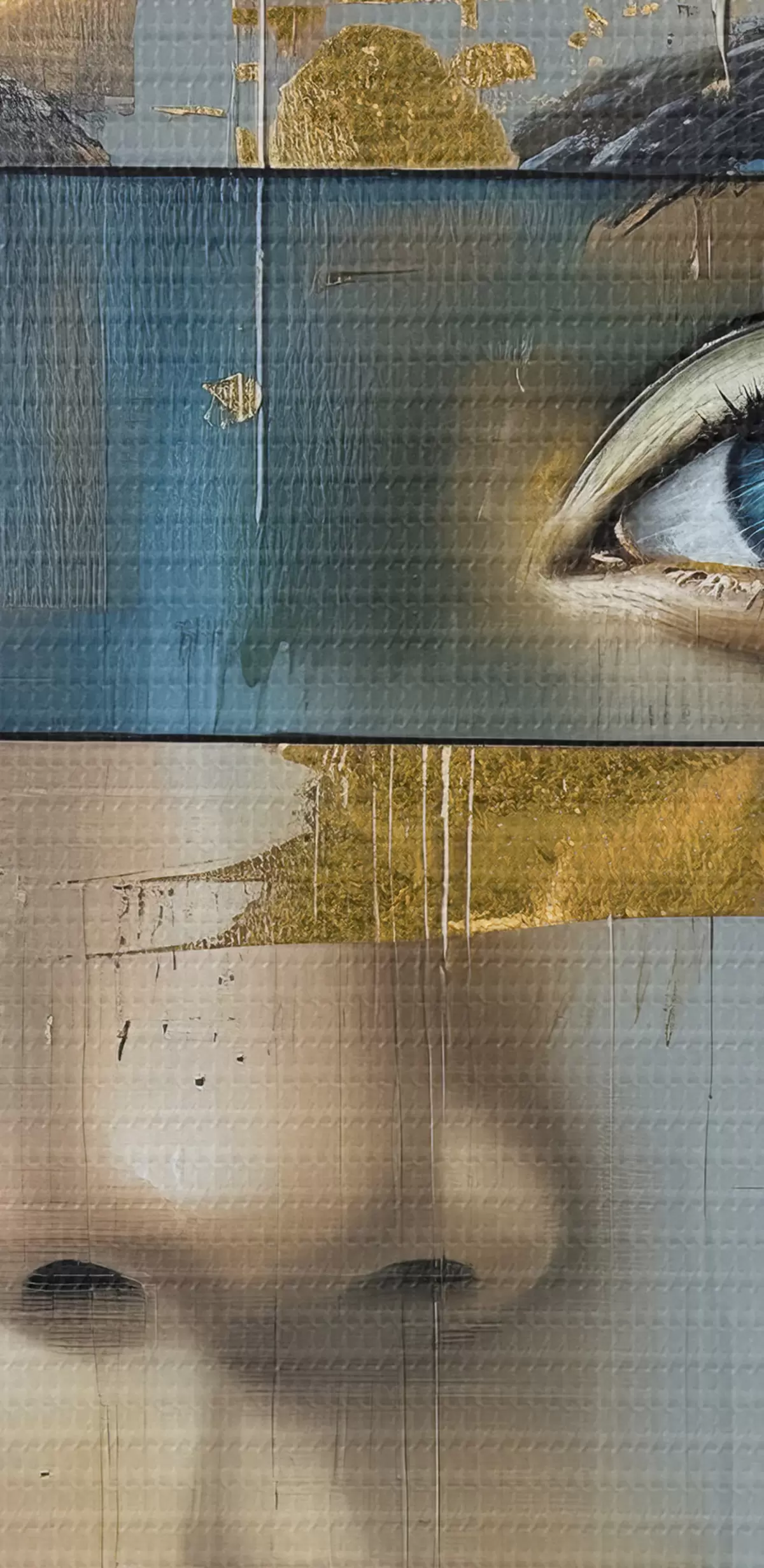 Um die Leinwand auf Keilrahmen zu spannen, ohne das Bild zu beschädigen, verwenden wir ein gespiegeltes Bild.